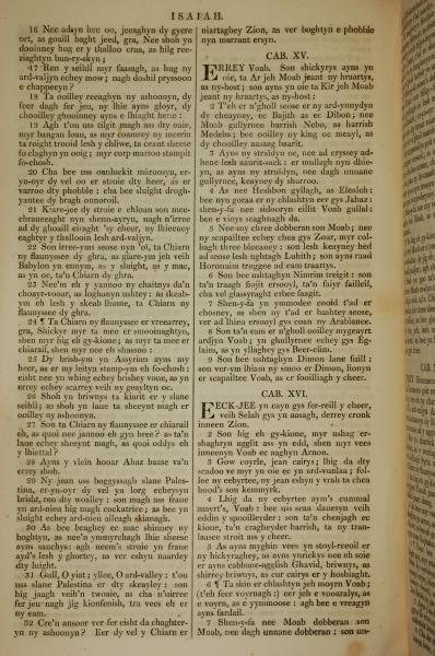 1819年曼島語聖經 以賽亞書 14 章 16 節到 16 章 7 節