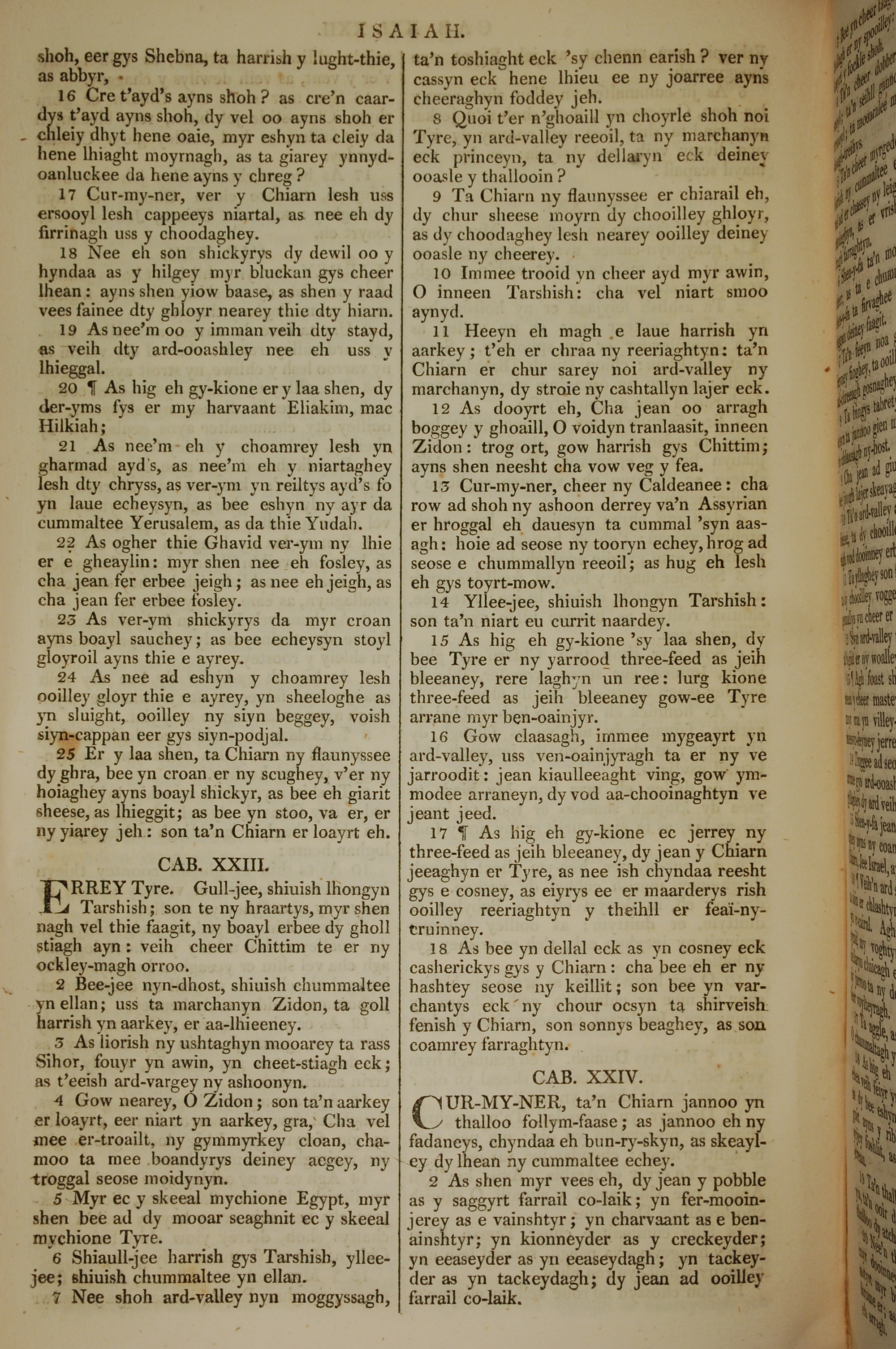 1819年曼島語聖經 以賽亞書 22 章 16 節到 24 章 2 節