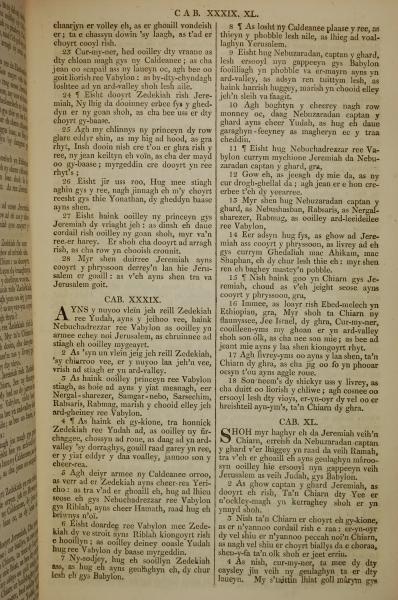 1819年曼島語聖經 耶利米書 38 章 23 節到 40 章 4 節