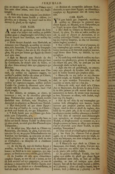 1819年曼島語聖經 耶利米書 42 章 22 節到 44 章 12 節