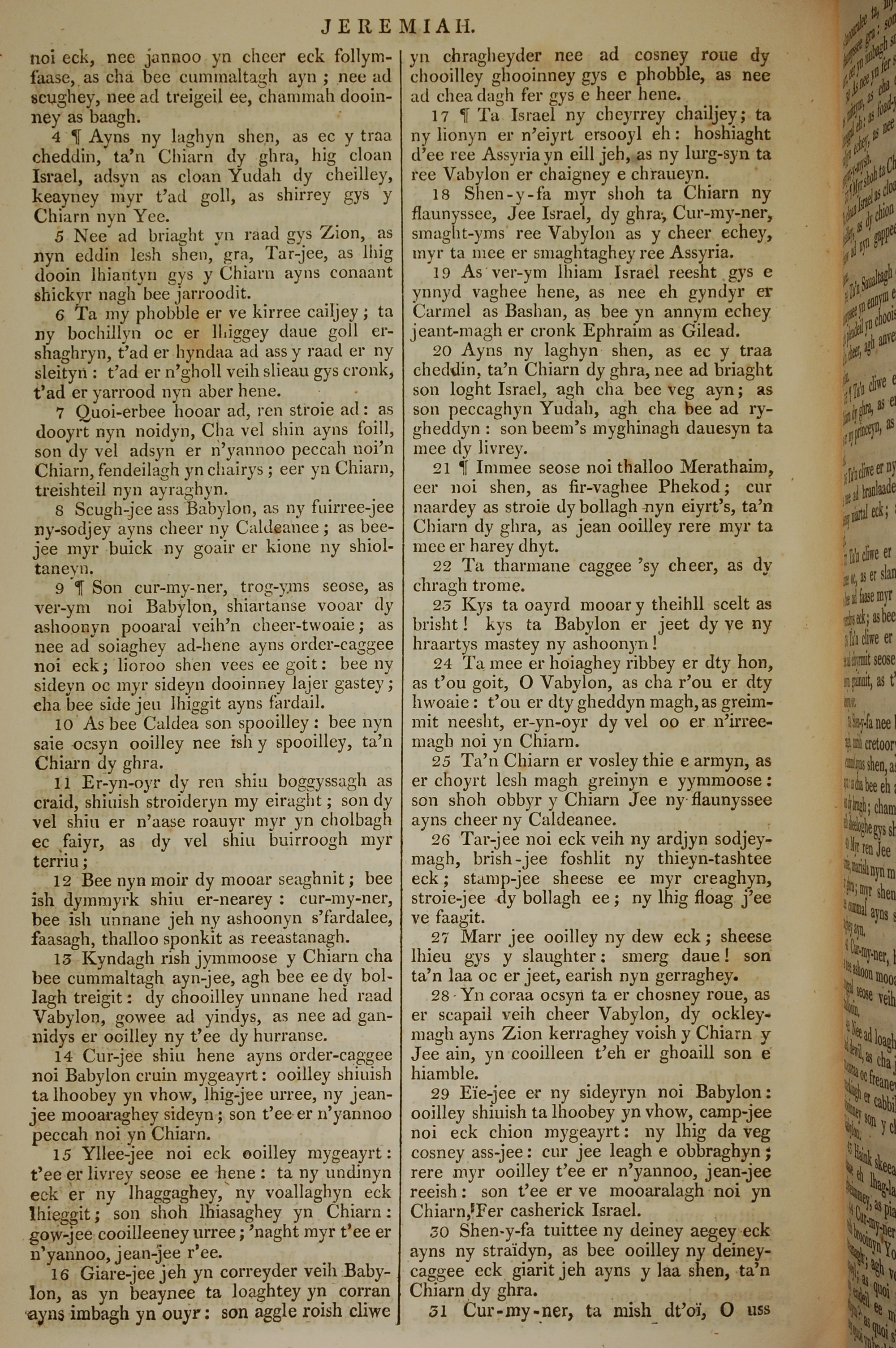 1819年曼島語聖經 耶利米書 50 章 4 節到 50 章 31 節