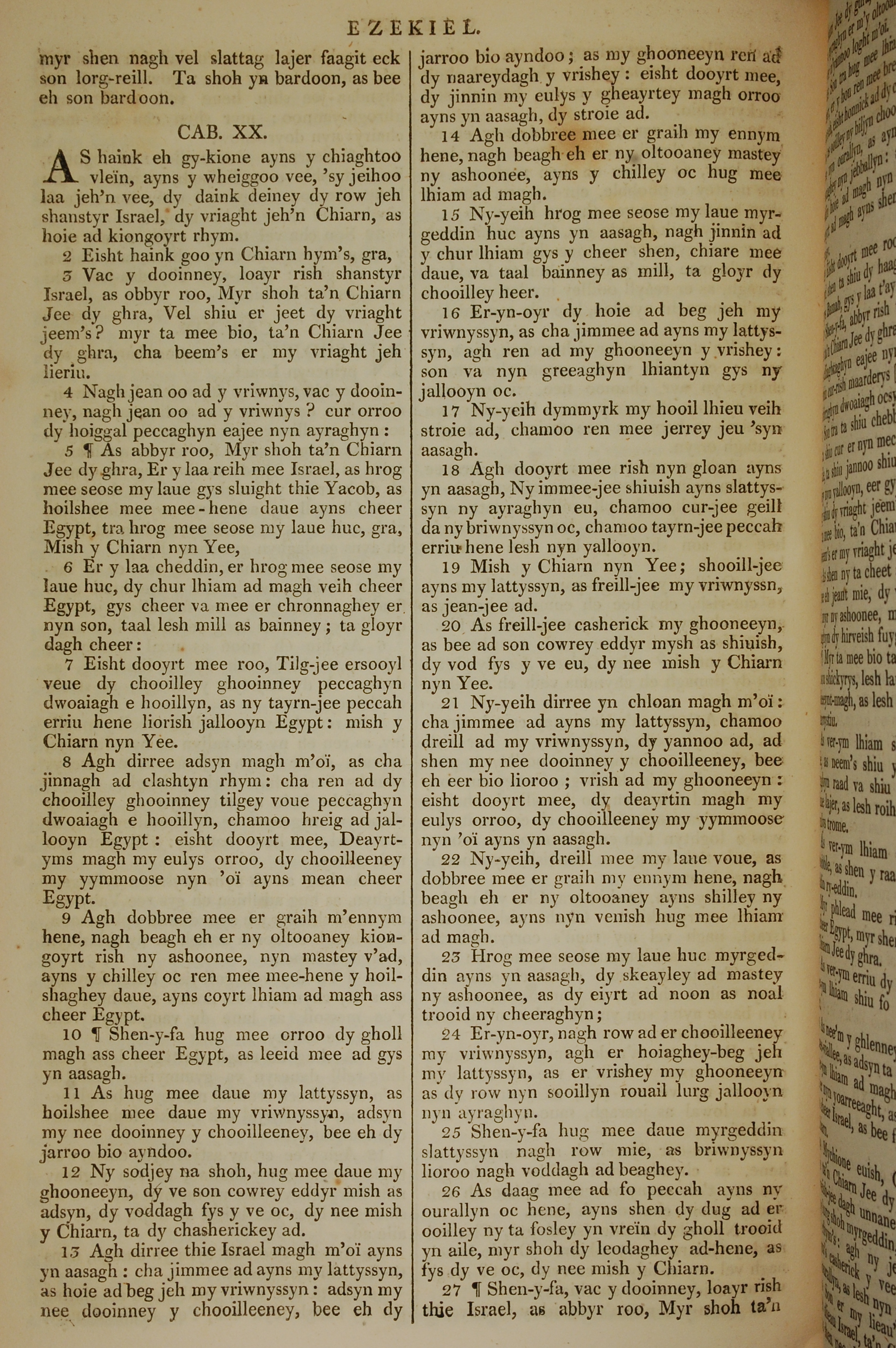 1819年曼島語聖經 以西結書 20 章 1 節到 20 章 27 節