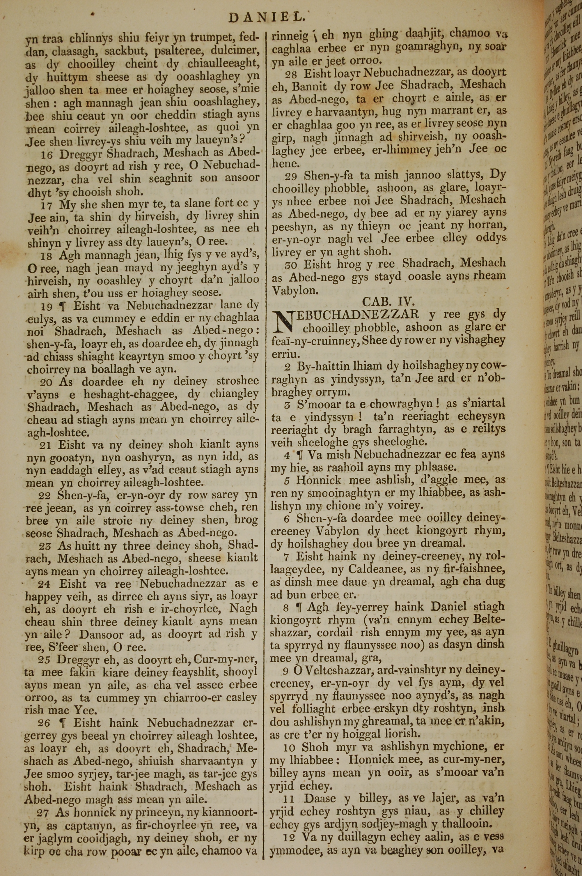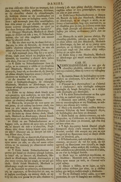 1819年曼島語聖經 但以理書 3 章 16 節到 4 章 12 節