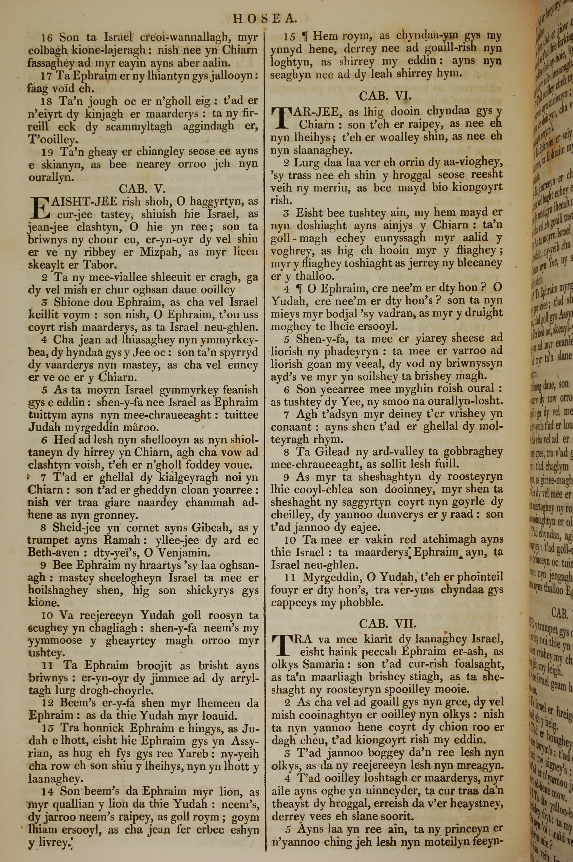 1819年曼島語聖經 何西阿書 4 章 16 節到 7 章 5 節
