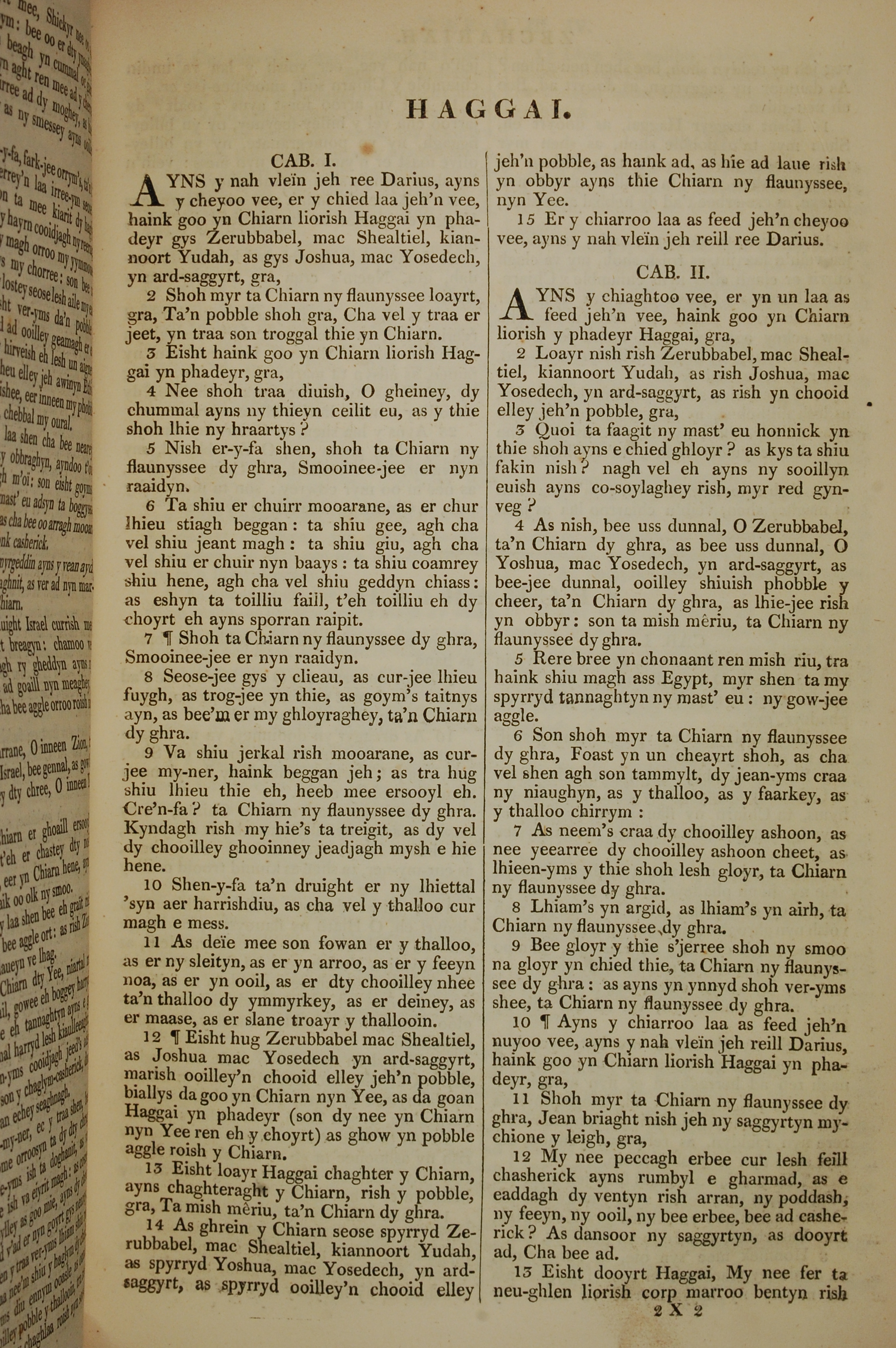 1819年曼島語聖經 哈該書 1 章 1 節到 2 章 13 節