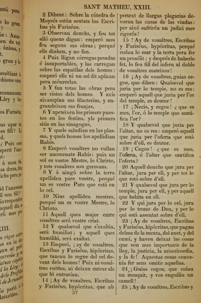 1835年加泰羅尼亞語新約全書 馬太福音 23 章 2 節到 23 章 25 節
