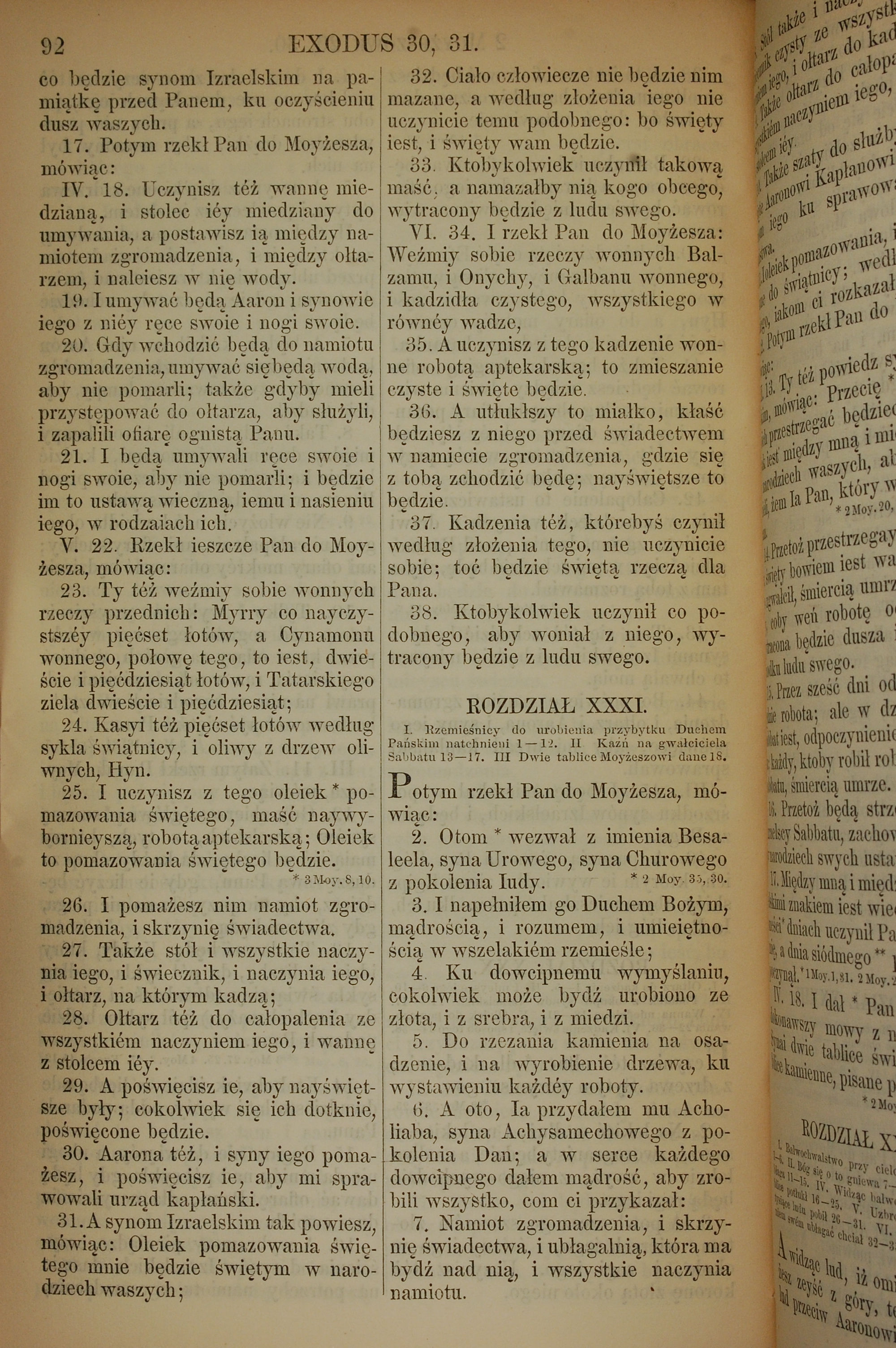 1857年波蘭文新舊約全書 出埃及記 30 章 17 節到 31 章 7 節