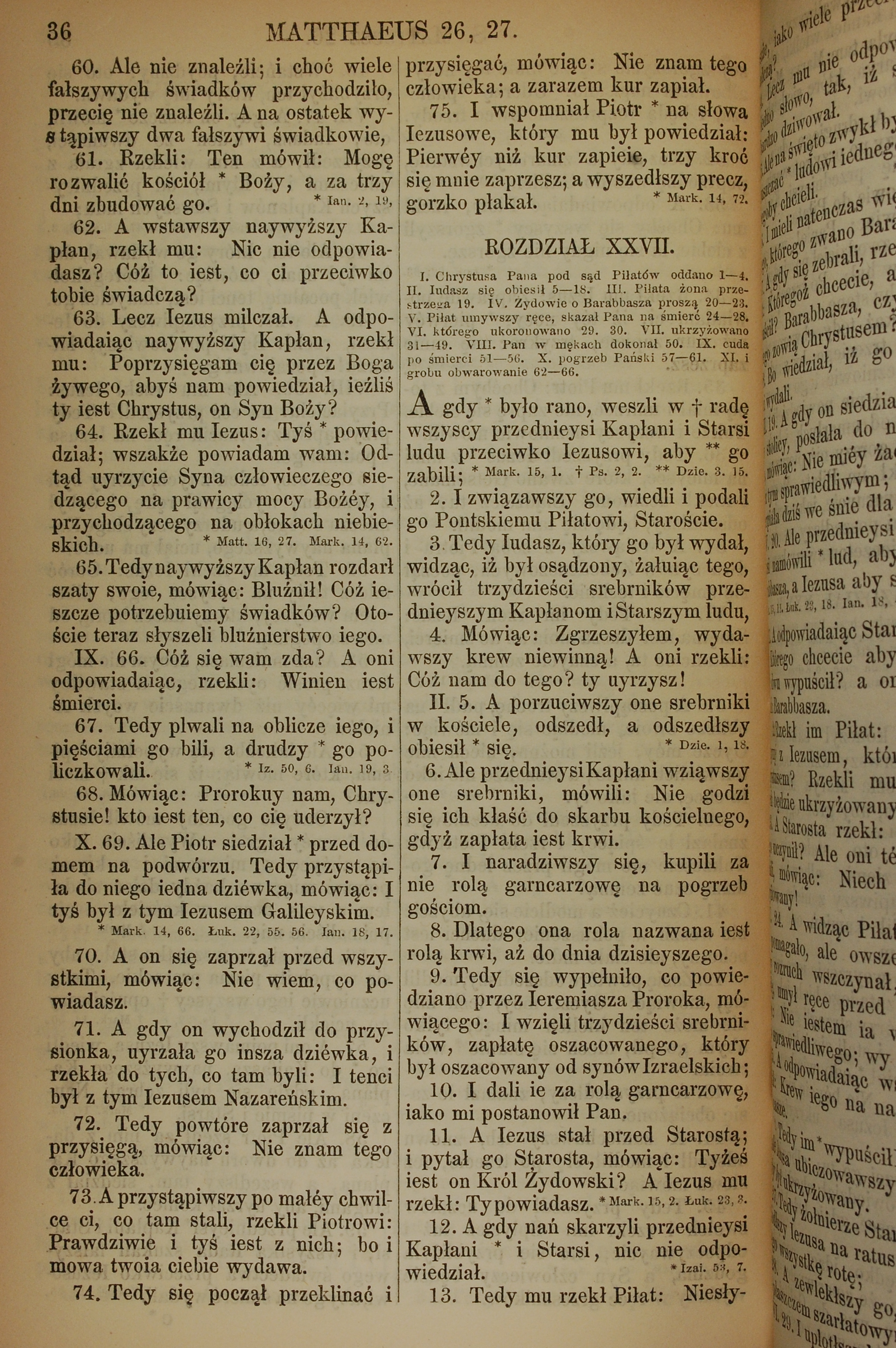1857年波蘭文新舊約全書 馬太福音 26 章 60 節到 27 章 13 節