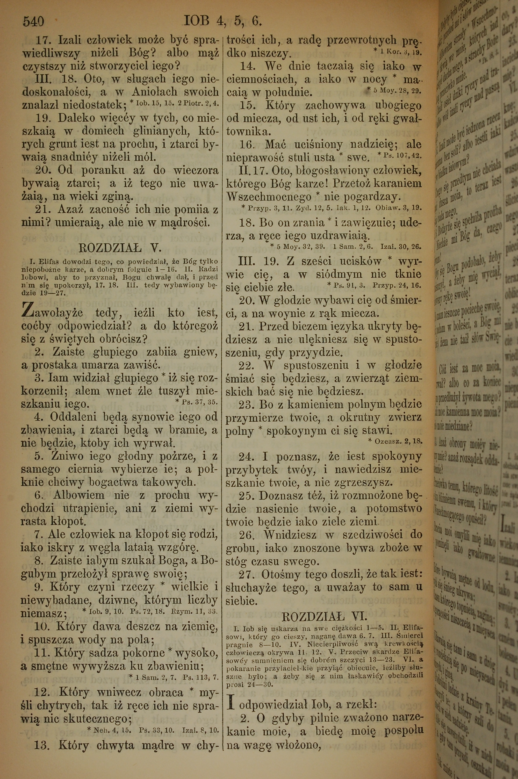 1857年波蘭文新舊約全書 約伯記 4 章 17 節到 6 章 2 節
