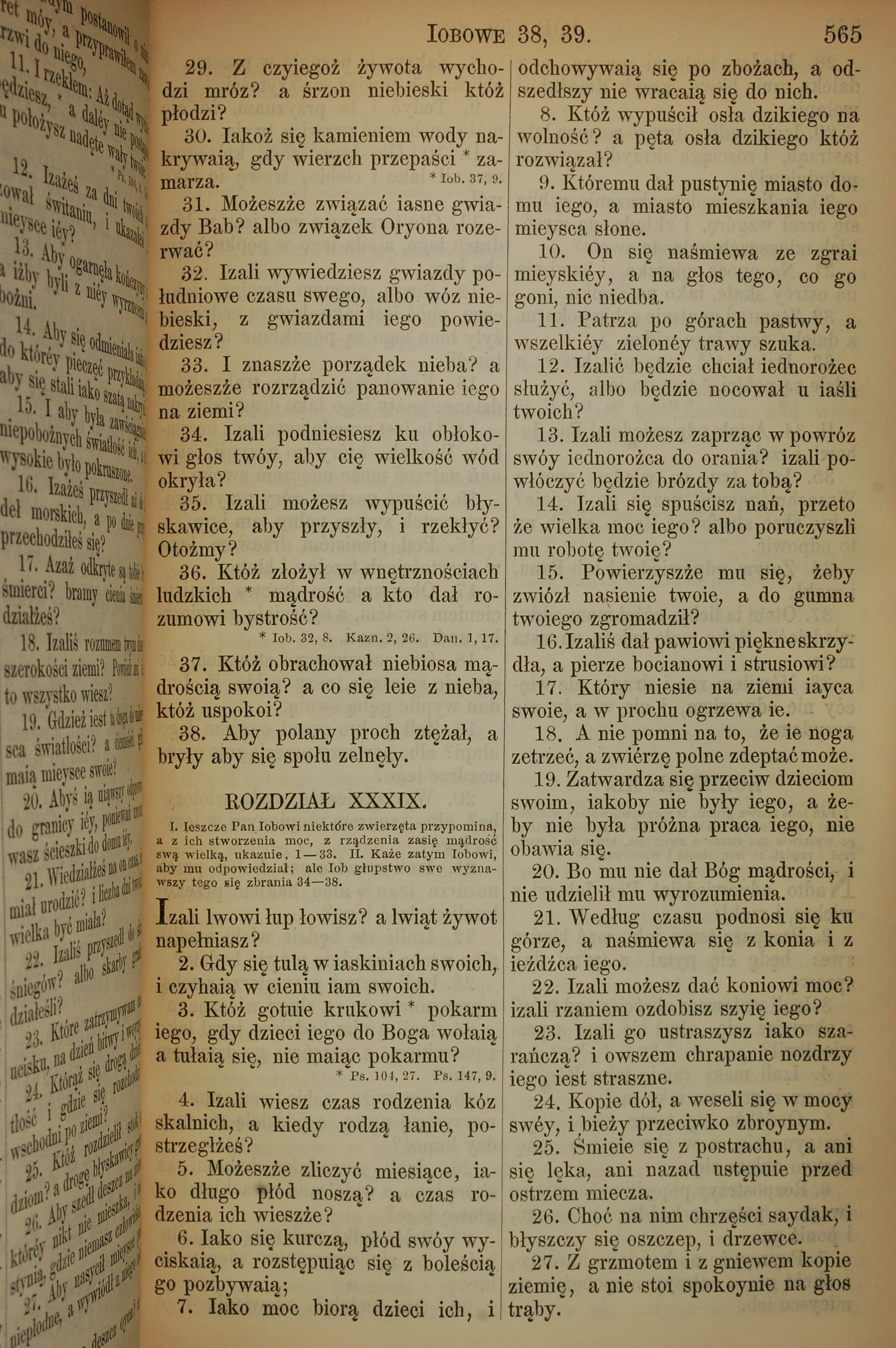 1857年波蘭文新舊約全書 約伯記 38 章 29 節到 39 章 27 節