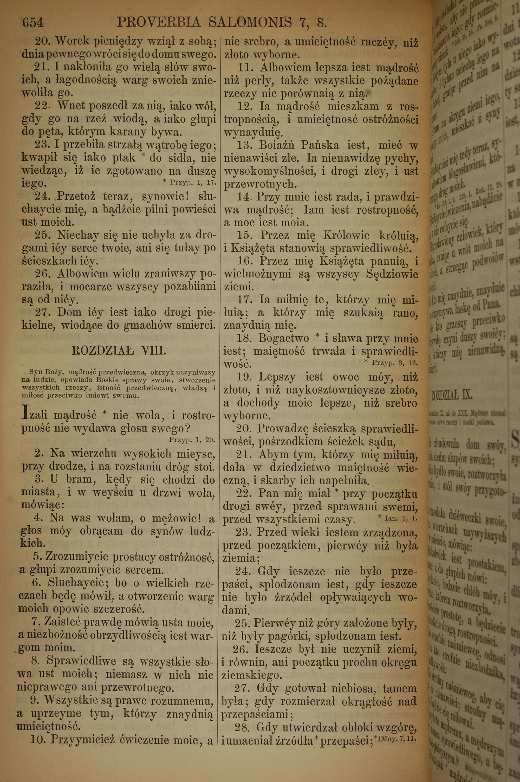 1857年波蘭文新舊約全書 箴言 7 章 20 節到 8 章 28 節
