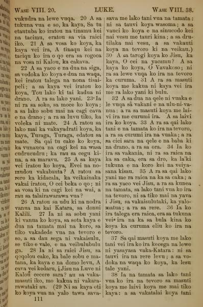 1858年斐濟文新約全書 路加福音 8 章 20 節到 8 章 38 節