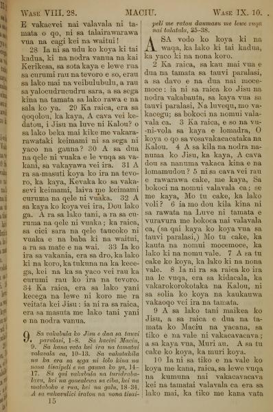 1858年斐濟文新約全書 馬太福音 8 章 28 節到 9 章 10 節