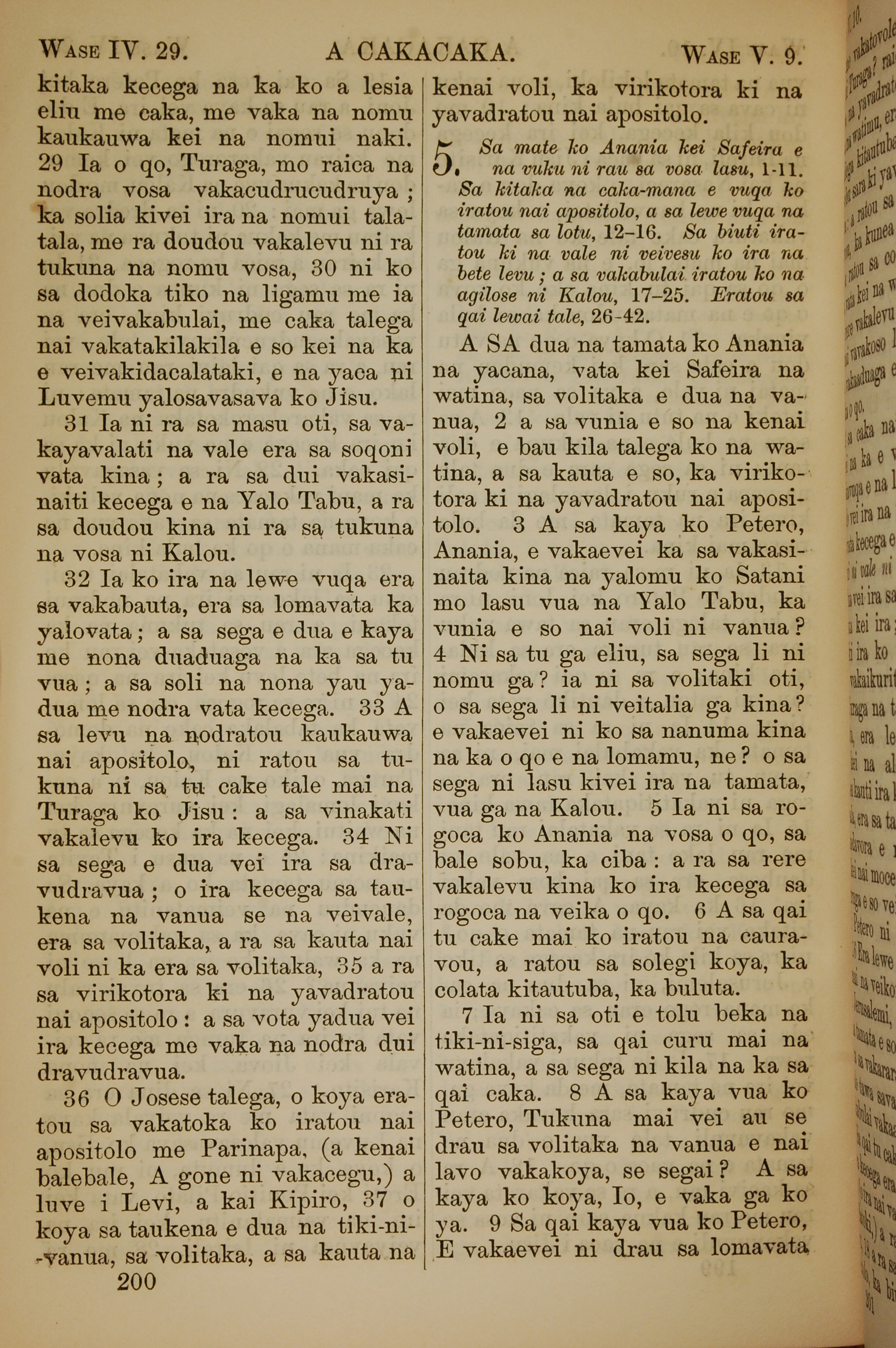 1858年斐濟文新約全書 使徒行傳 4 章 29 節到 5 章 9 節
