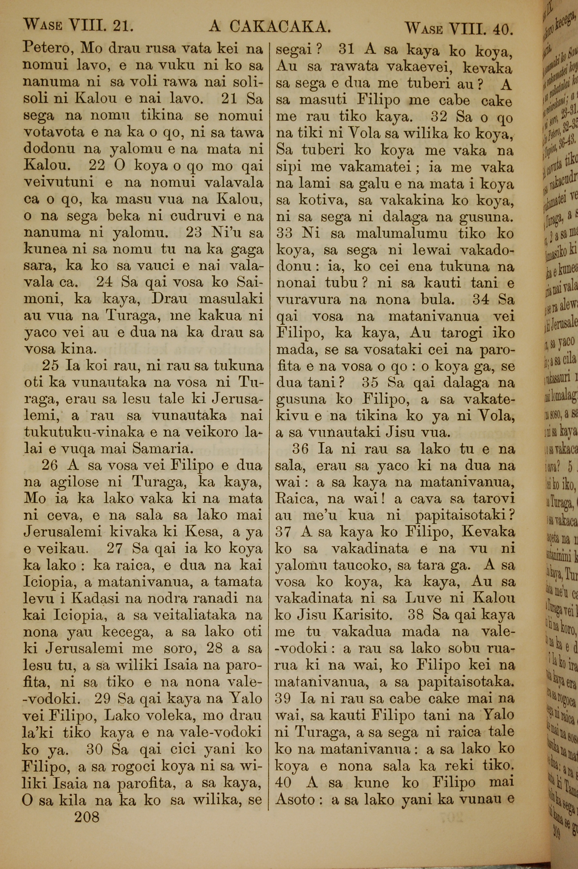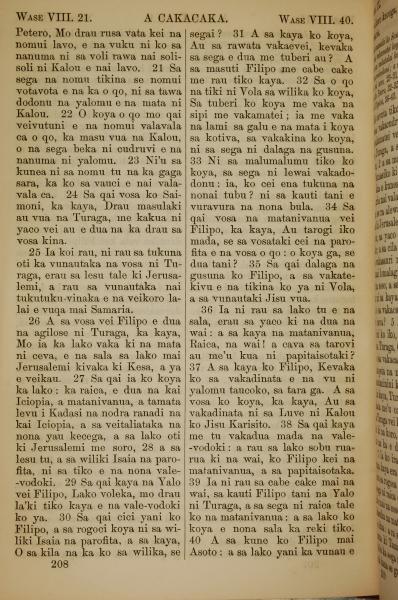 1858年斐濟文新約全書 使徒行傳 8 章 20 節到 8 章 40 節