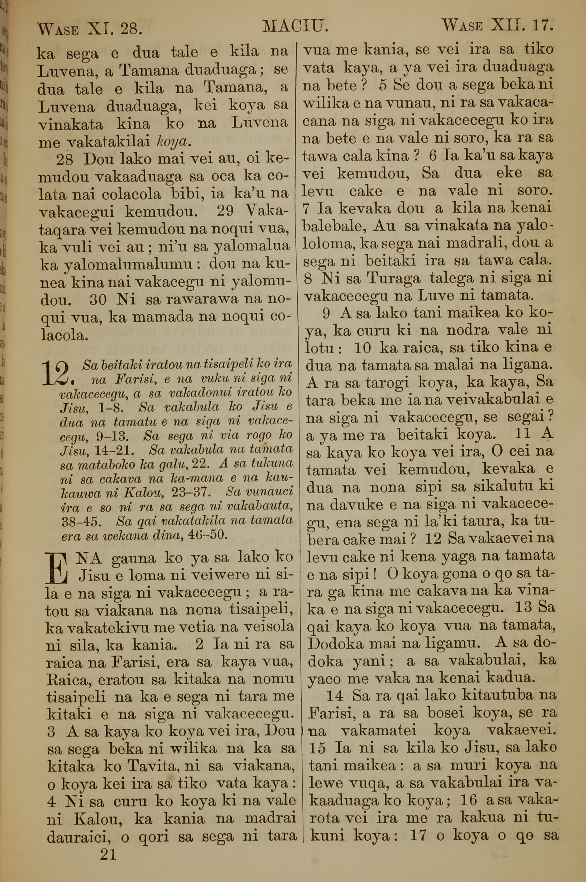 1858年斐濟文新約全書 馬太福音 11 章 28 節到 12 章 17 節