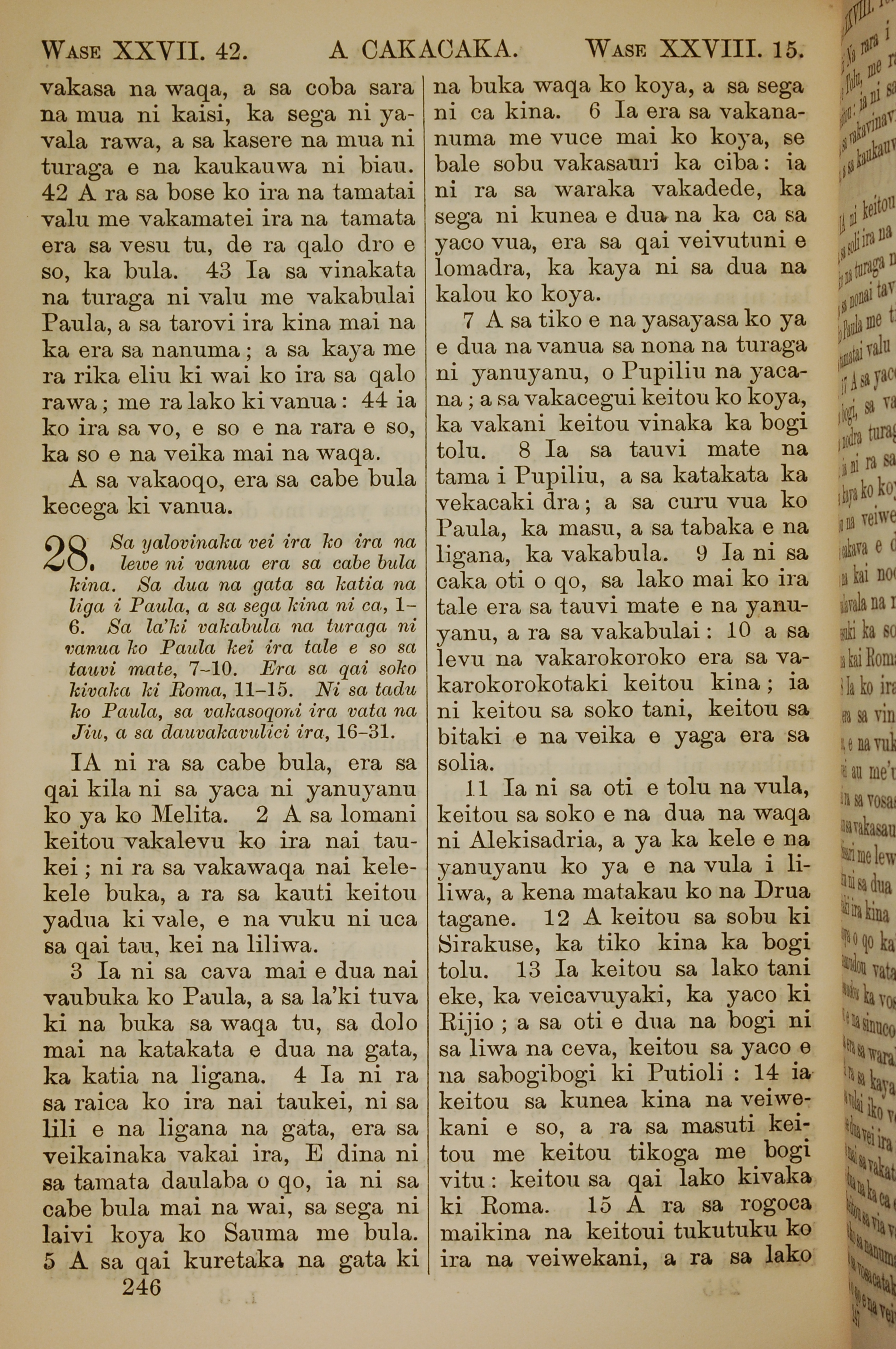 1858年斐濟文新約全書 使徒行傳 27 章 42 節到 28 章 15 節