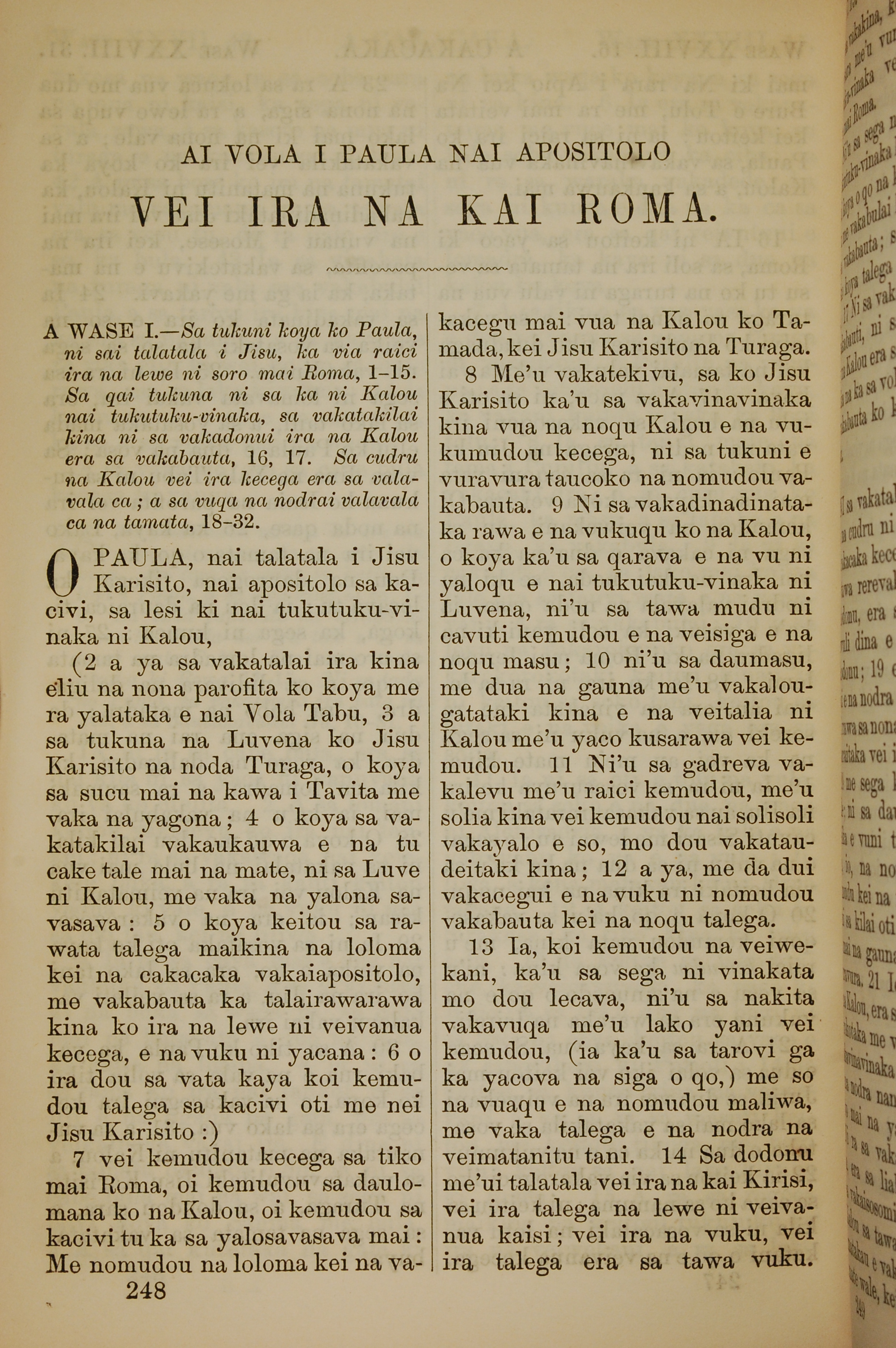 1858年斐濟文新約全書 羅馬書 1 章 1 節到 1 章 14 節