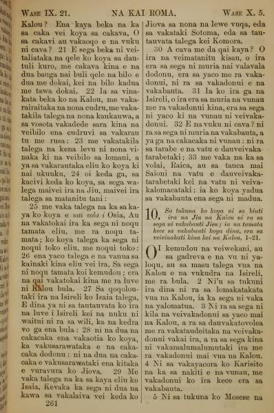 1858年斐濟文新約全書 羅馬書 9 章 21 節到 10 章 5 節