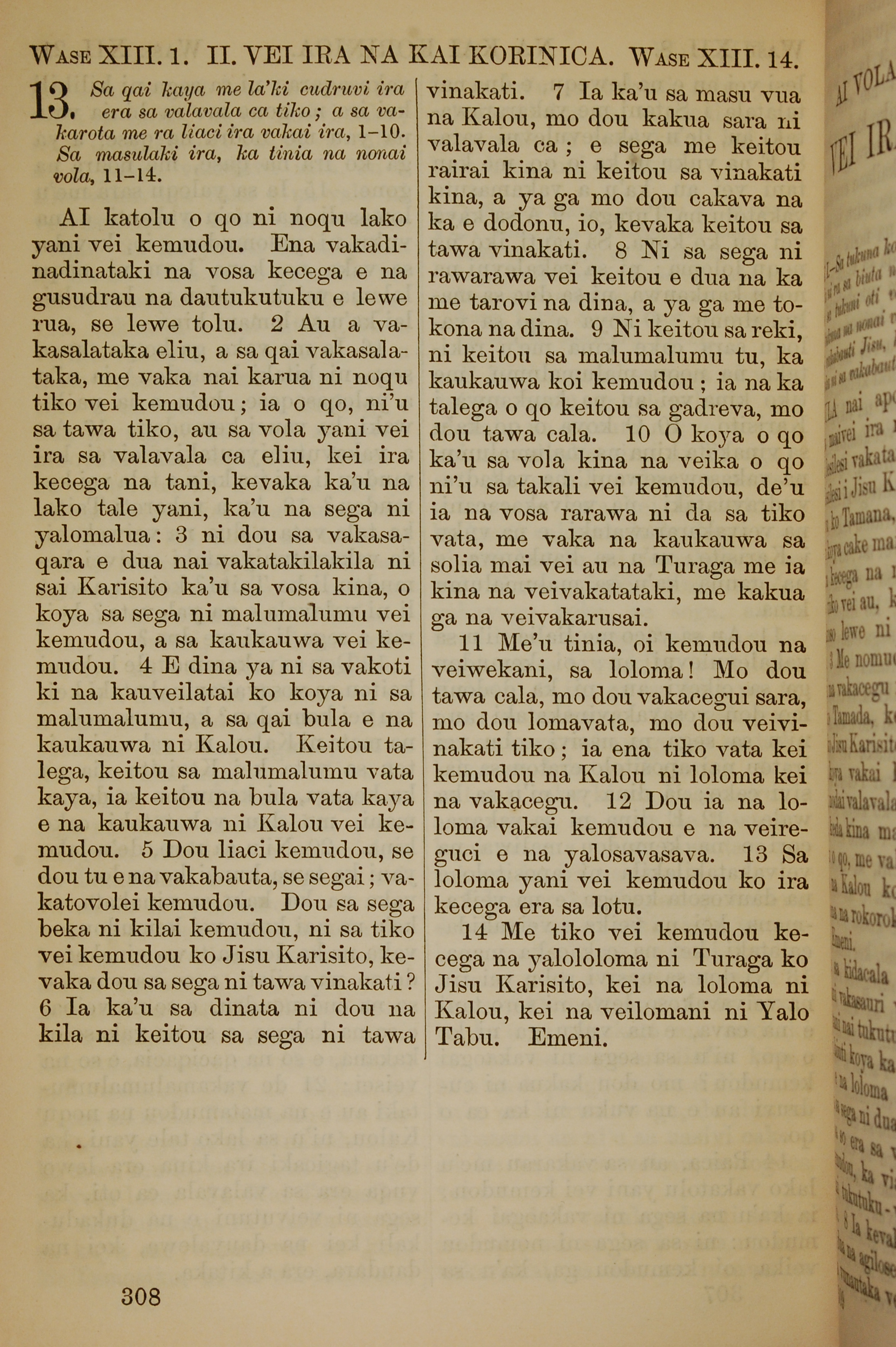 1858年斐濟文新約全書 哥林多後書 13 章 1 節到 13 章 14 節