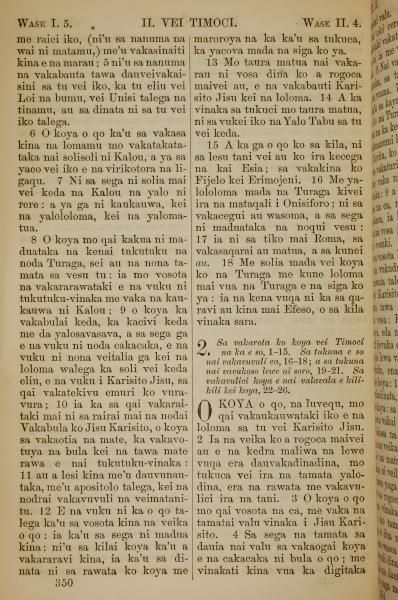 1858年斐濟文新約全書 提摩太後書 1 章 5 節到 2 章 4 節