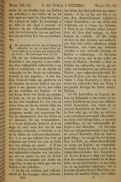 1858年斐濟文新約全書 彼得前書 3 章 22 節到 4 章 16 節