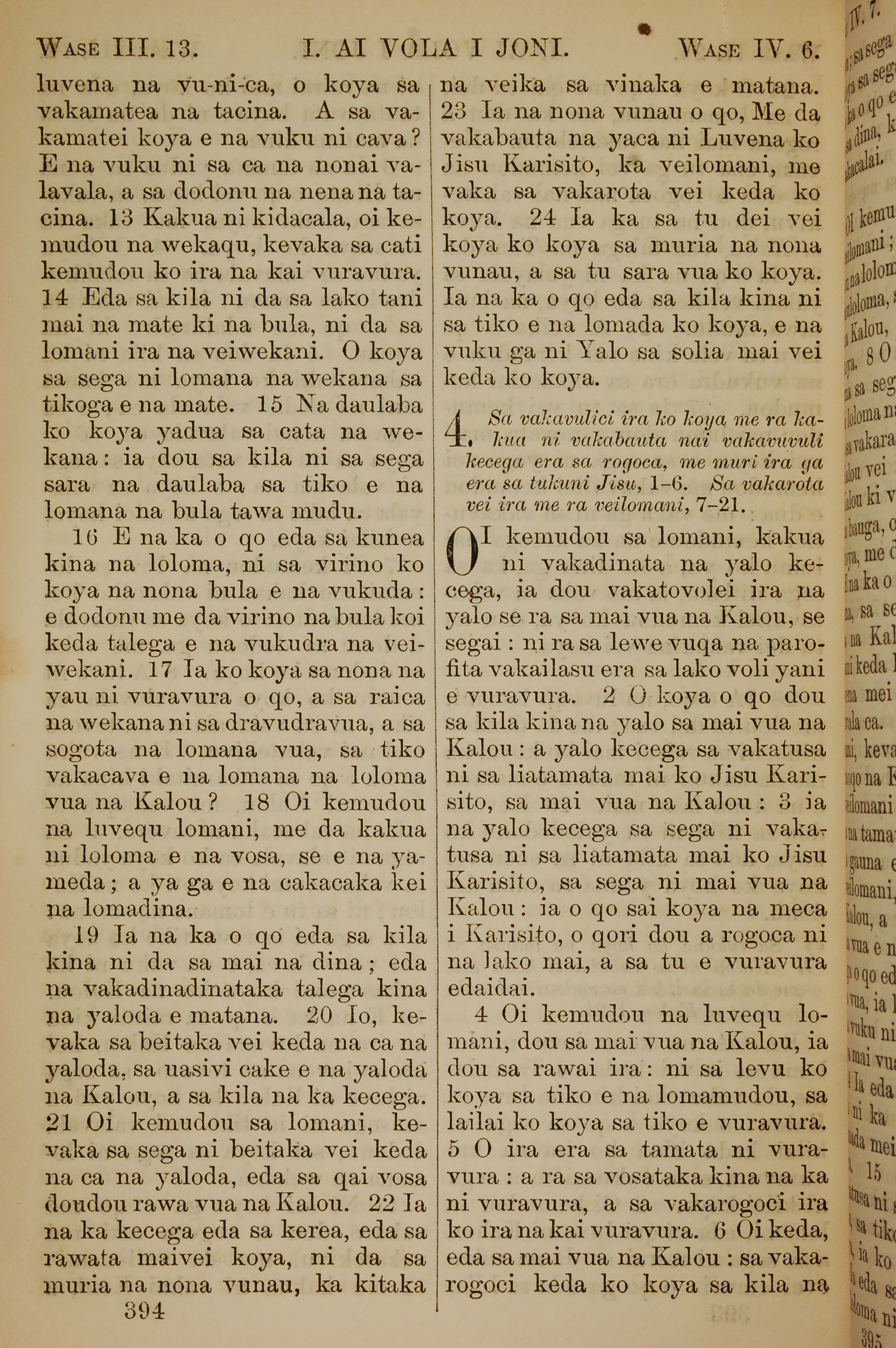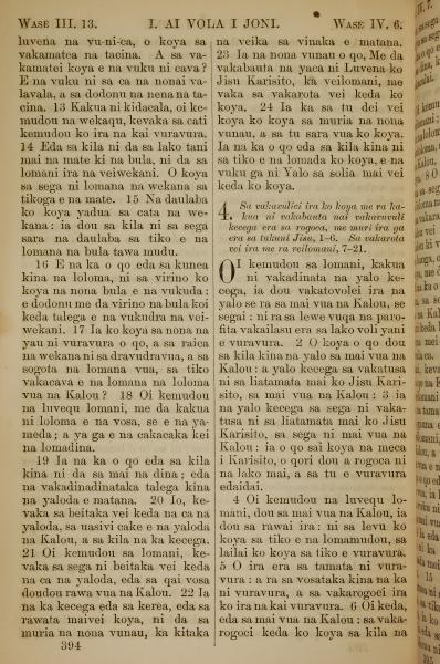 1858年斐濟文新約全書 約翰一書 3 章 13 節到 4 章 6 節