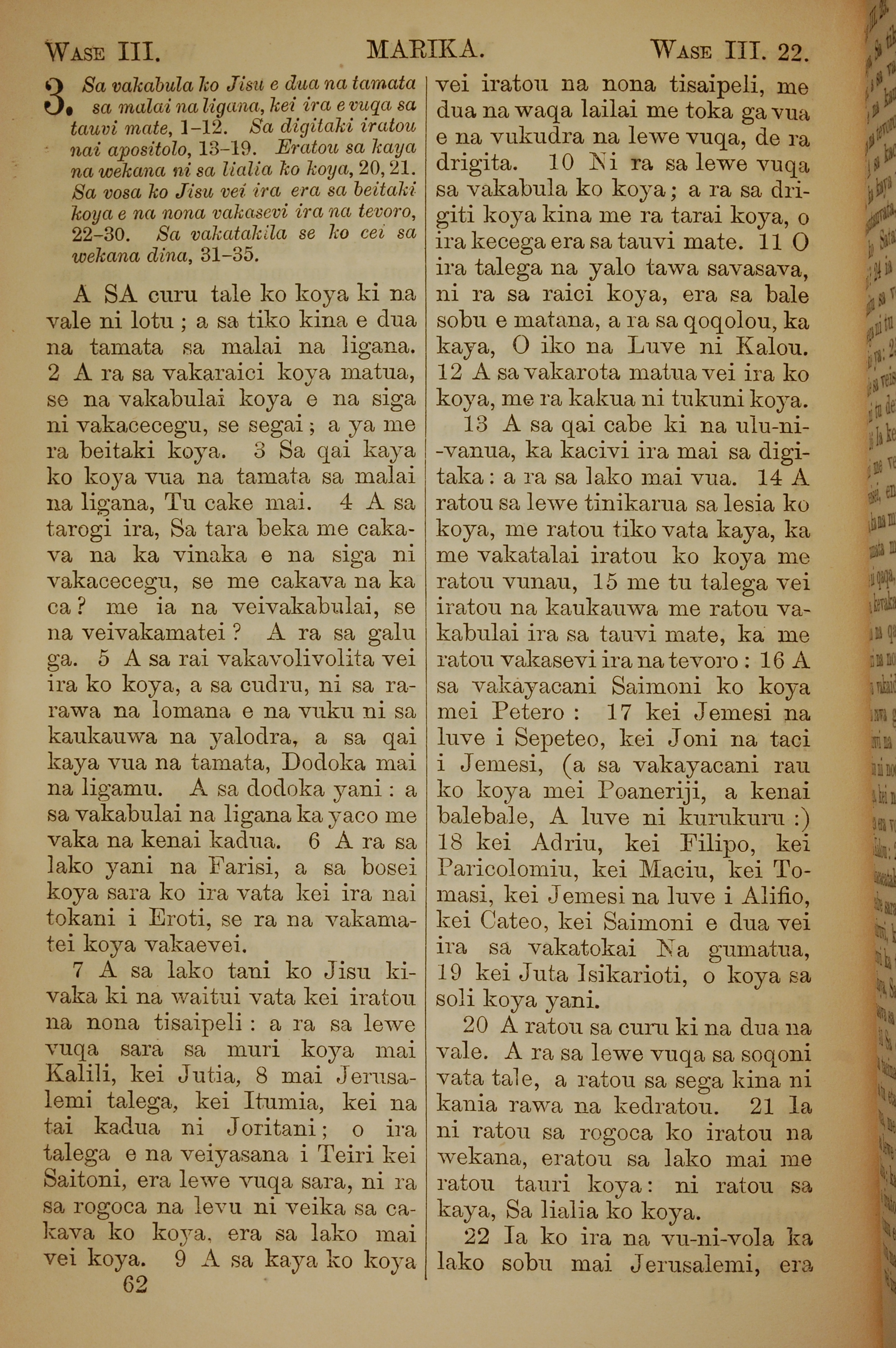 1858年斐濟文新約全書 馬可福音 3 章 1 節到 3 章 22 節