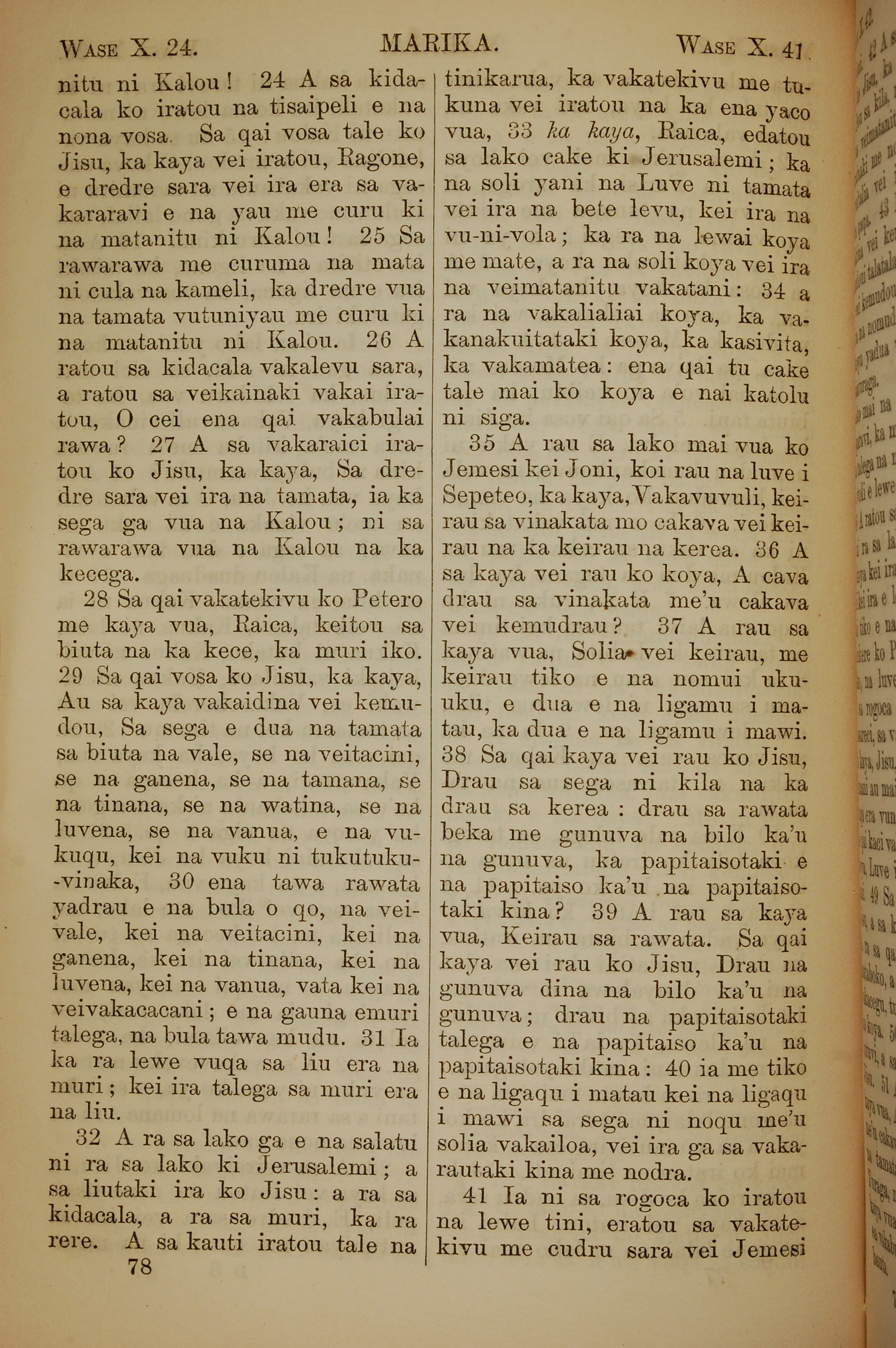 1858年斐濟文新約全書 馬可福音 10 章 24 節到 10 章 41 節