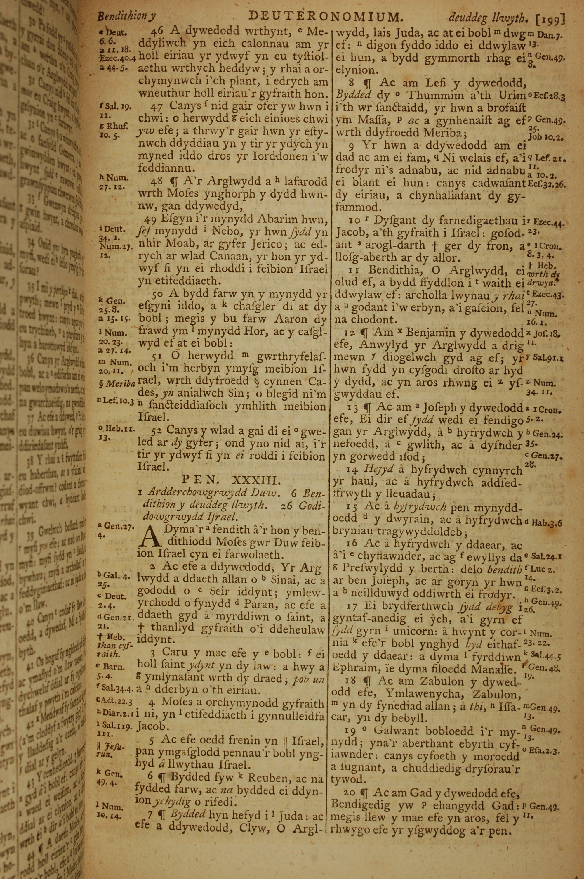 1796年威爾斯文新舊約全書 申命記 32 章 46 節到 33 章 20 節
