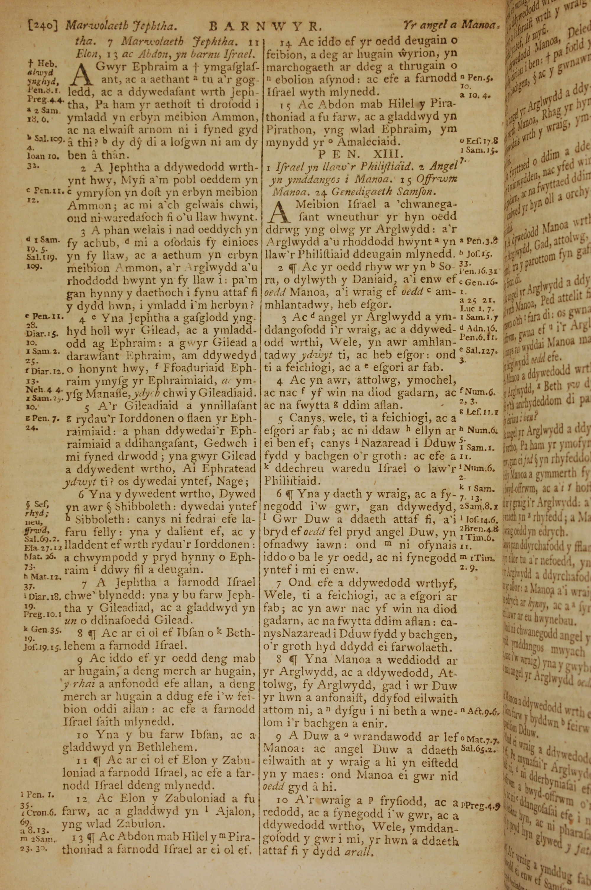 1796年威爾斯文新舊約全書 士師記 12 章 1 節到 13 章 10 節