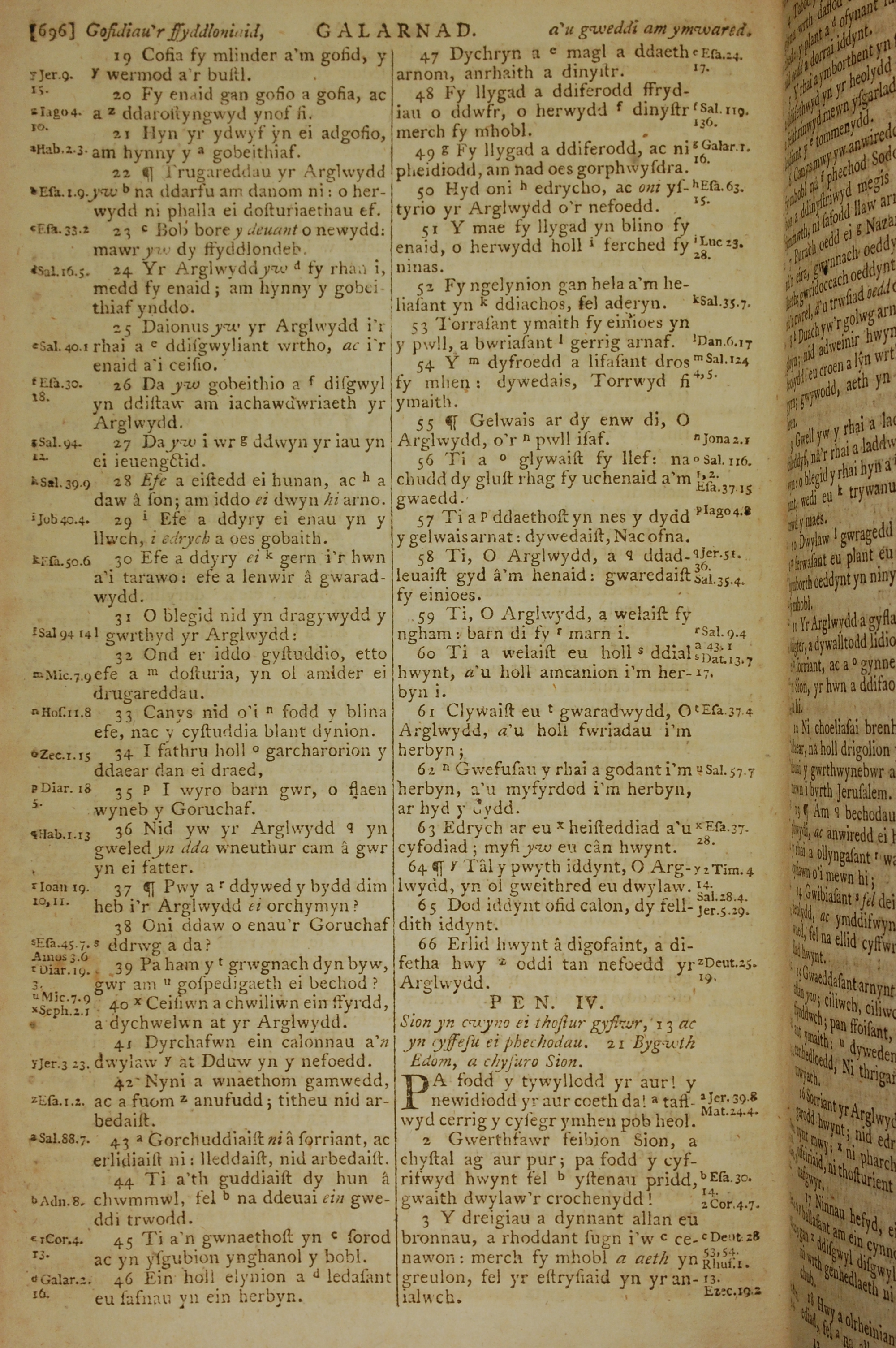 1796年威爾斯文新舊約全書 耶利米哀歌 3 章 19 節到 4 章 3 節
