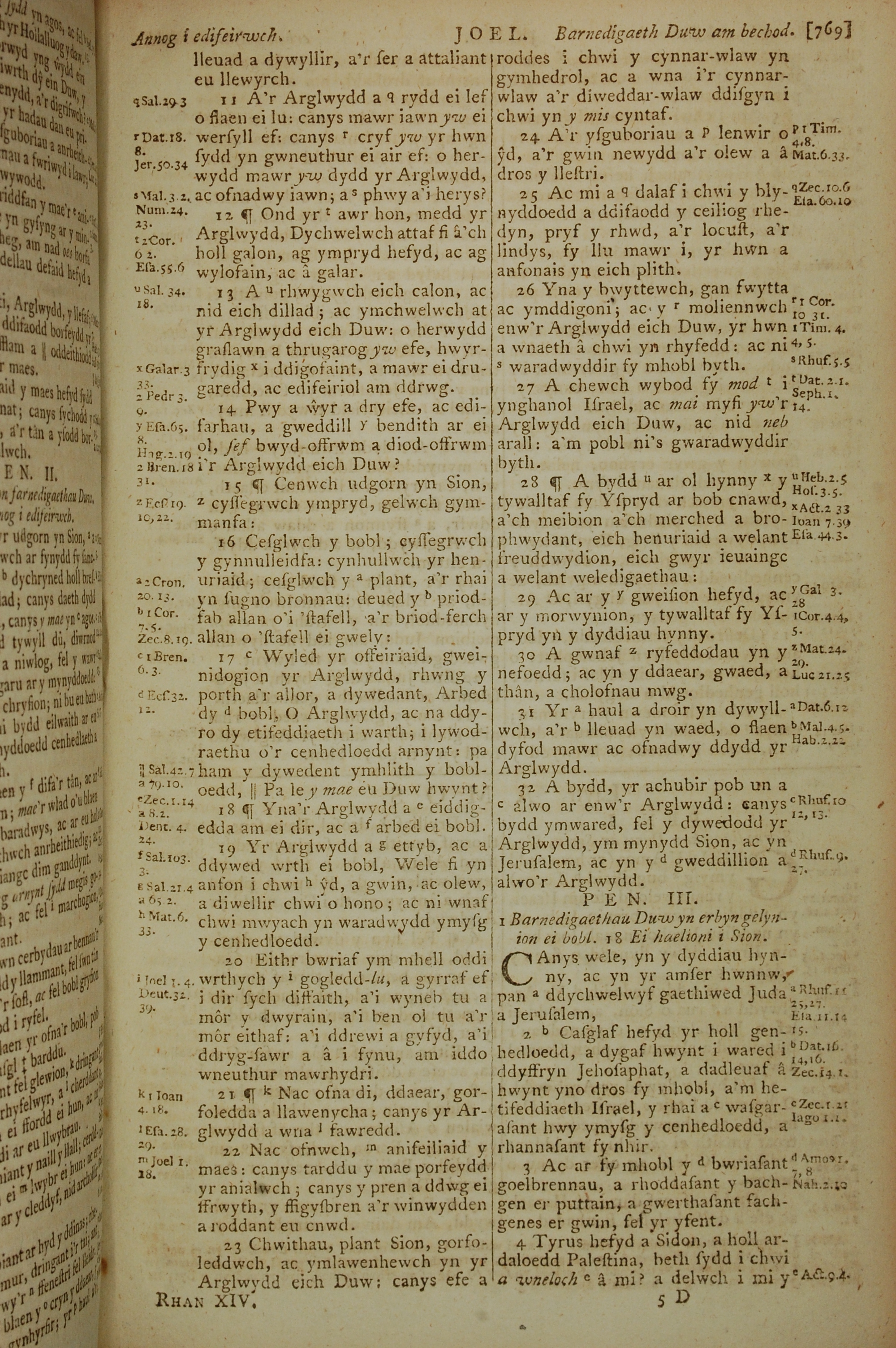 1796年威爾斯文新舊約全書 約珥書 2 章 11 節到 3 章 4 節
