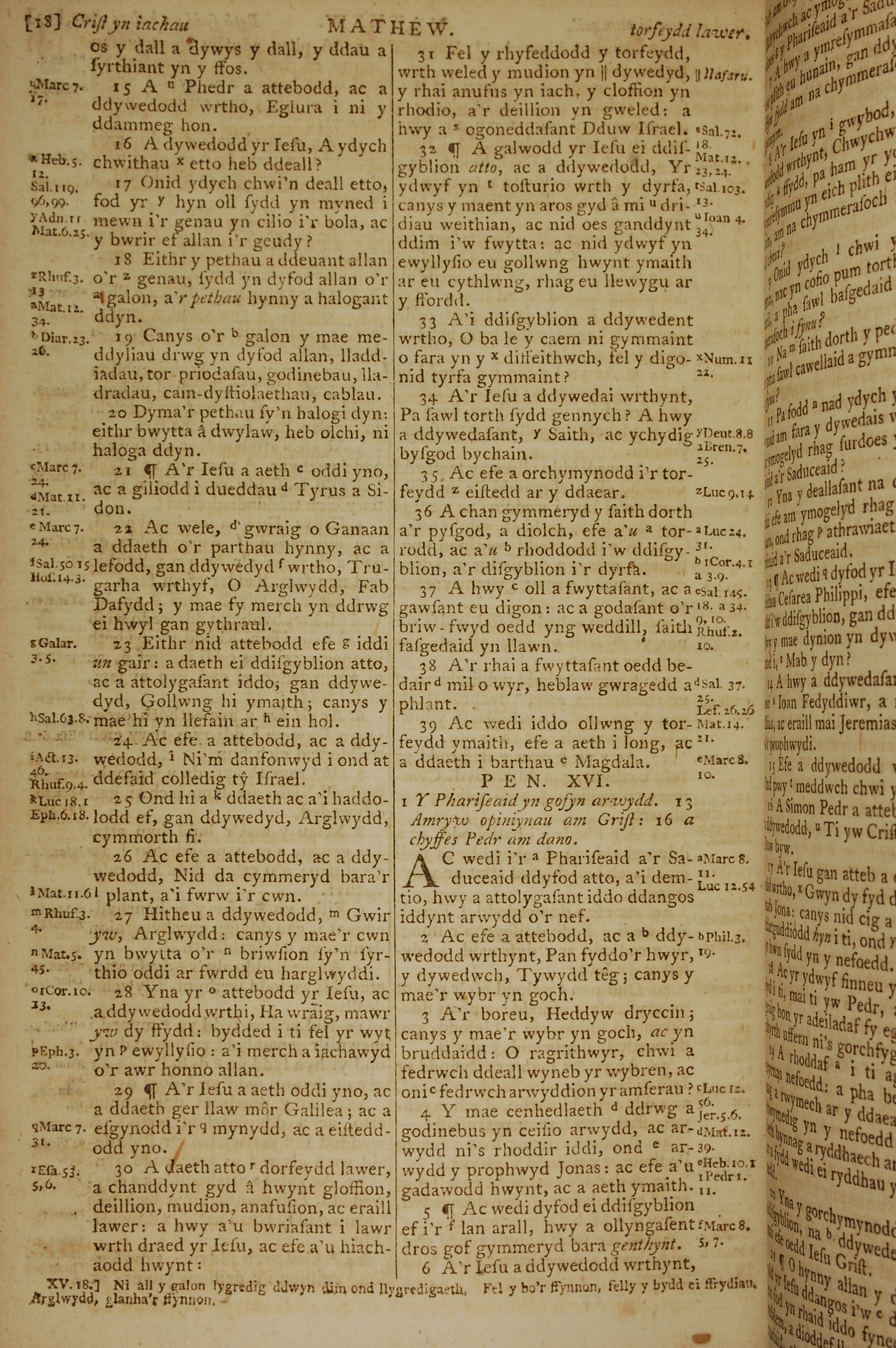 1796年威爾斯文新舊約全書 馬太福音 15 章 15 節到 16 章 6 節