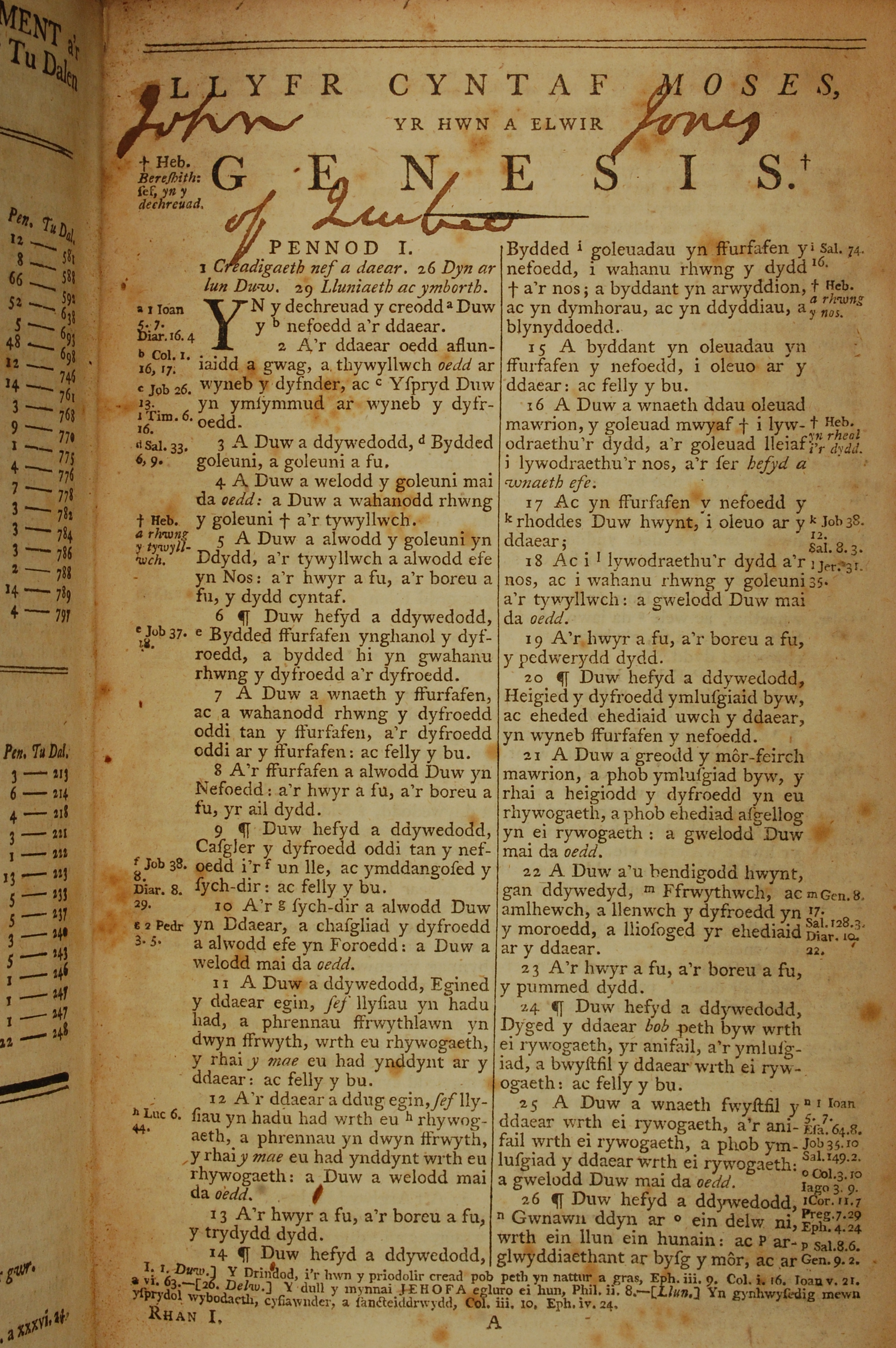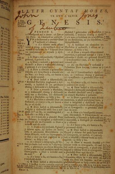 1796年威爾斯文新舊約全書 創世記 1 章 1 節到 1 章 26 節