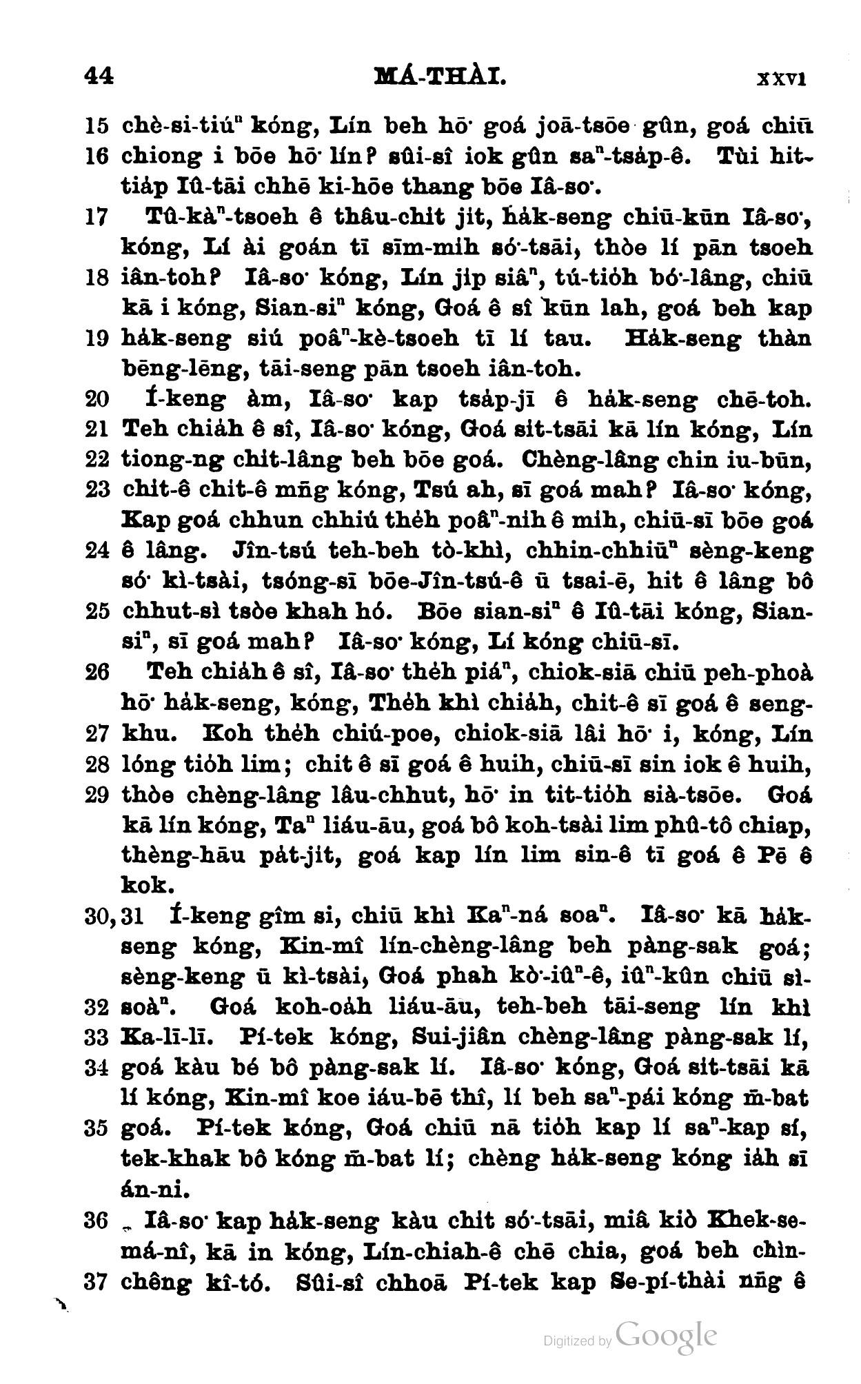 1898年新約全書 馬太福音 26 章 15 節到 26 章 37 節