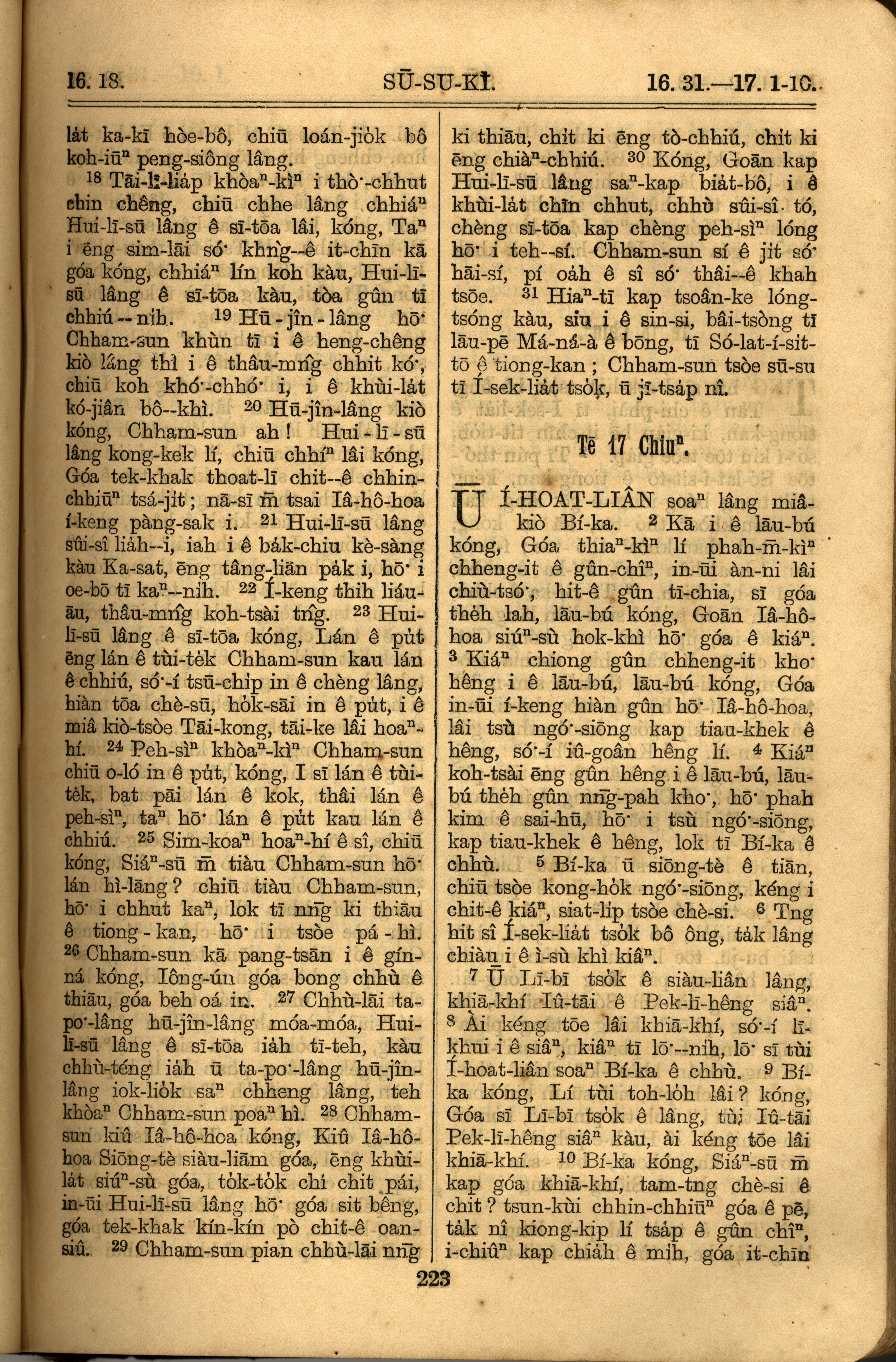 1921年羅馬字舊約全書 士師記 16 章 18 節到 17 章 10 節