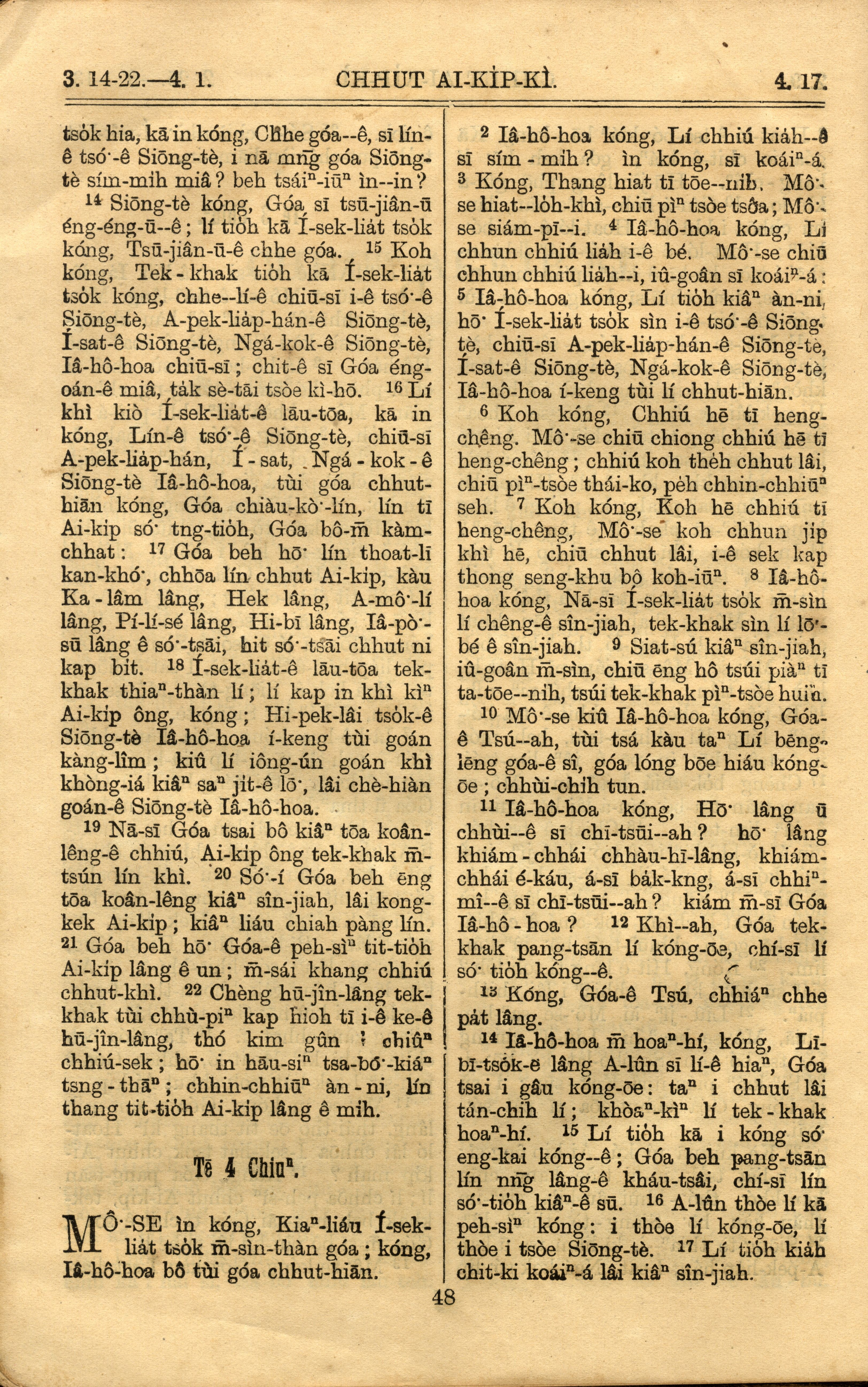 1921年羅馬字舊約全書 出埃及記 3 章 14 節到 4 章 17 節
