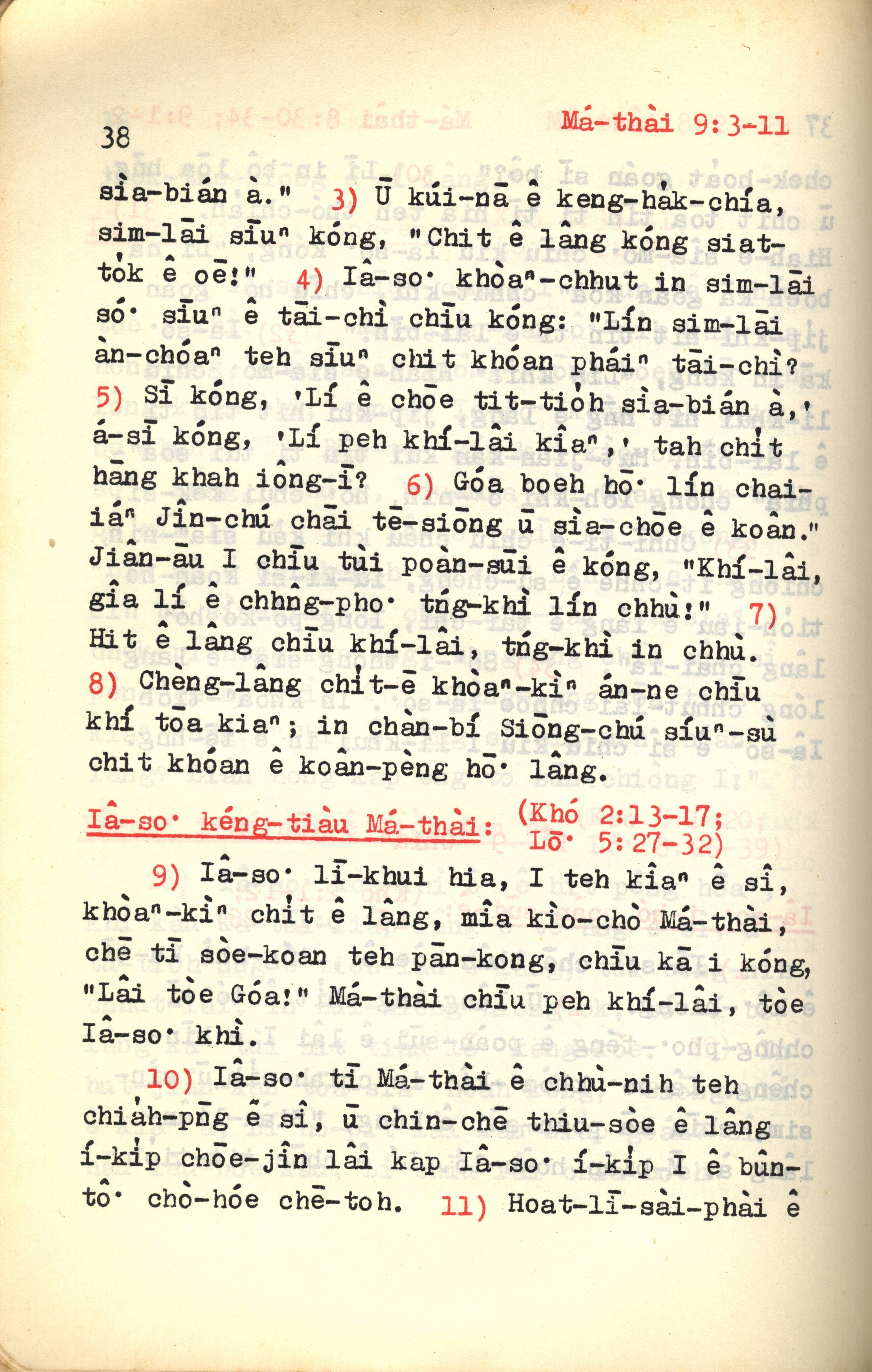 1972年新約紅皮聖經 馬太福音 9 章 3 節到 9 章 11 節