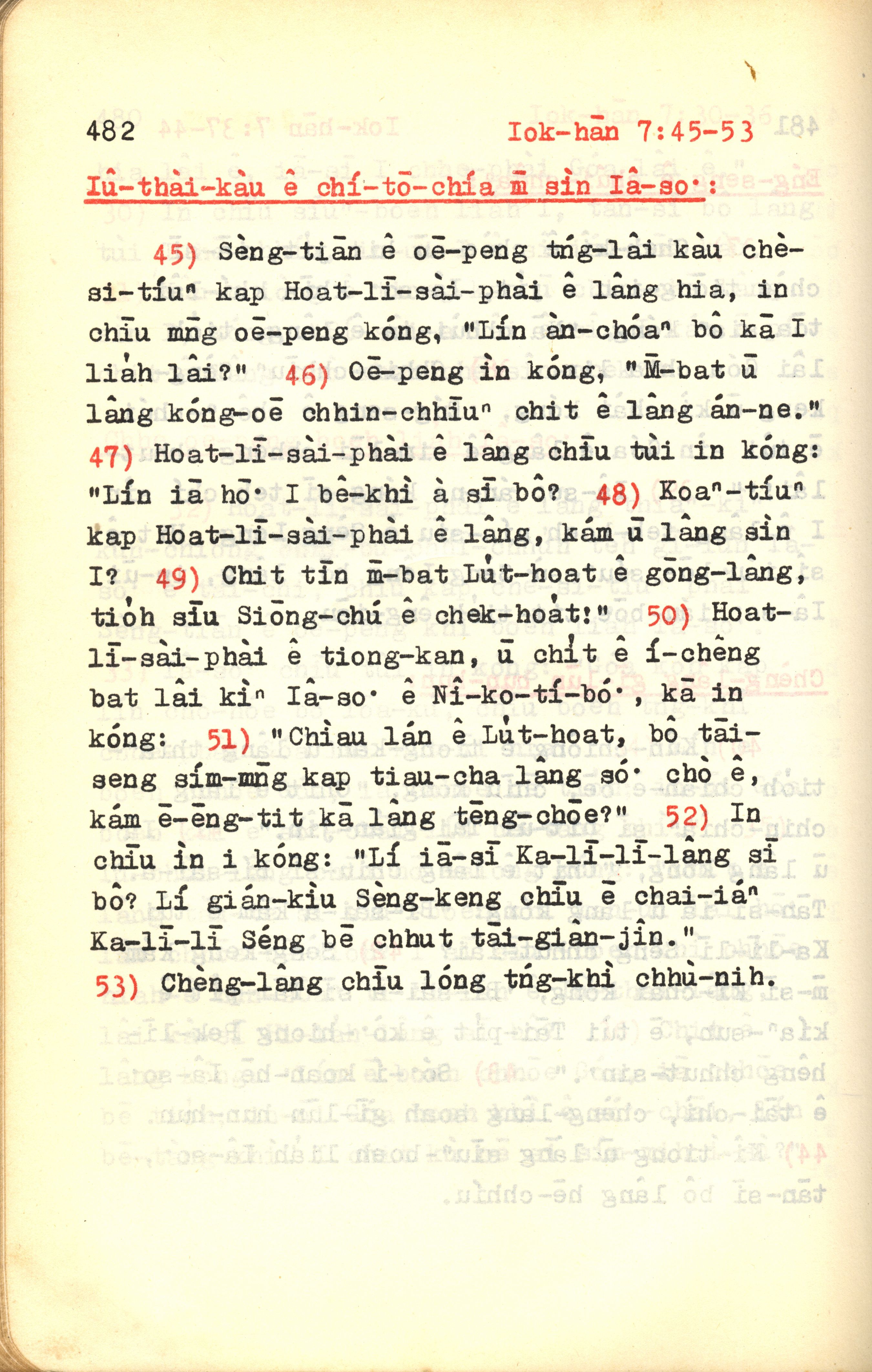 1972年新約紅皮聖經 約翰福音 7 章 45 節到 7 章 53 節