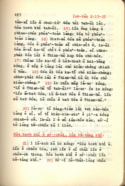 1972年新約紅皮聖經 約翰福音 8 章 15 節到 8 章 22 節