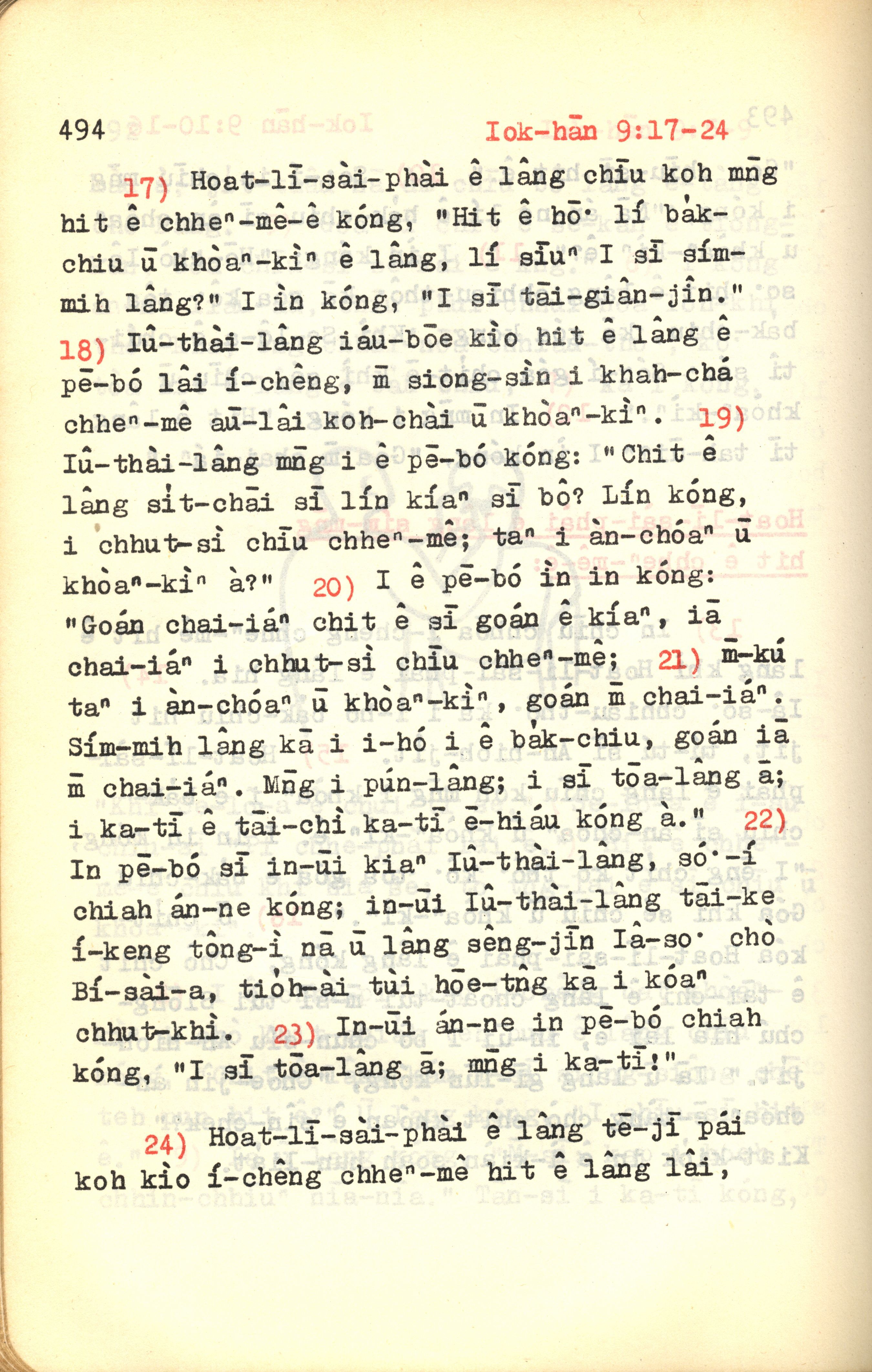 1972年新約紅皮聖經 約翰福音 9 章 17 節到 9 章 24 節