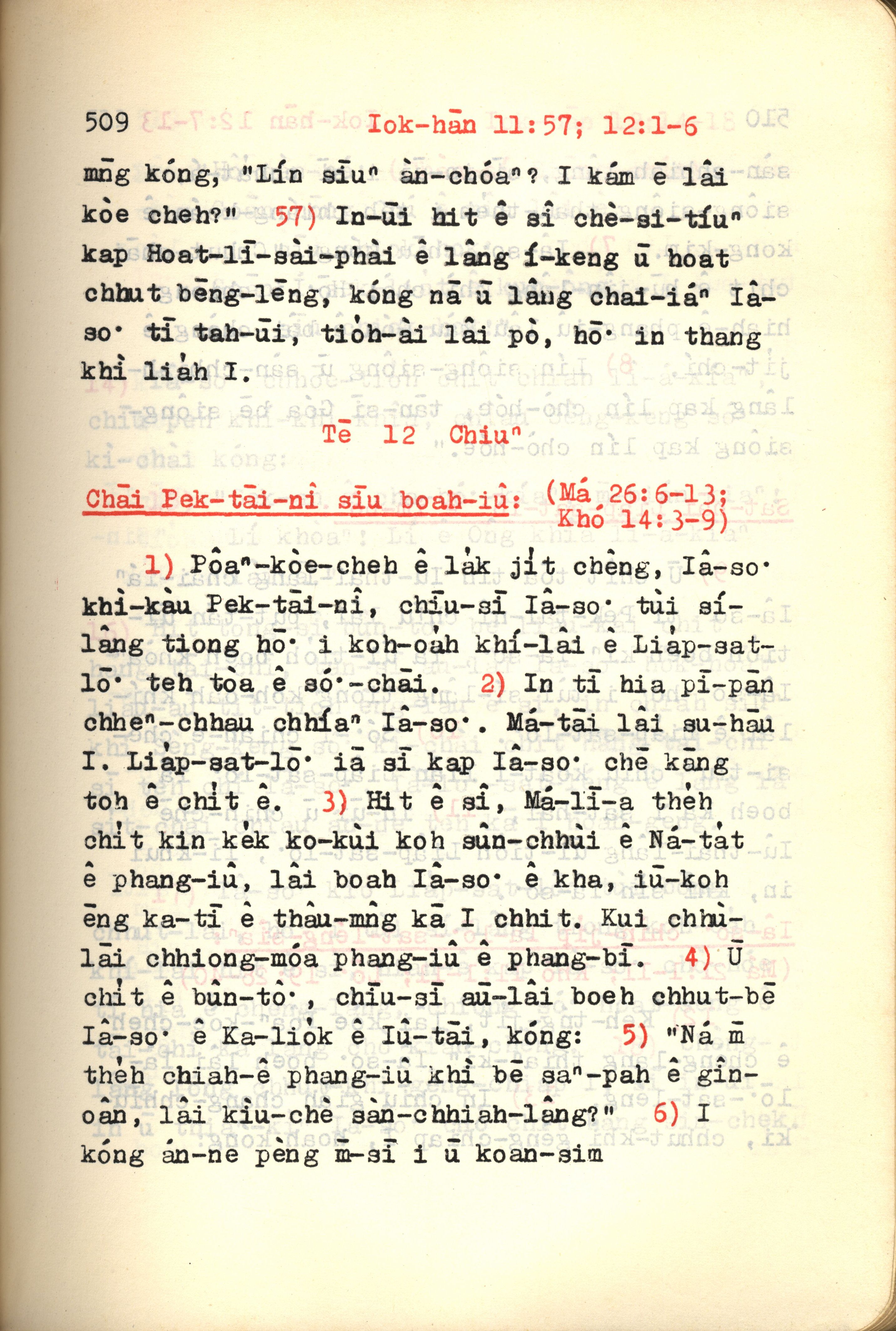 1972年新約紅皮聖經 約翰福音 11 章 57 節到 12 章 6 節