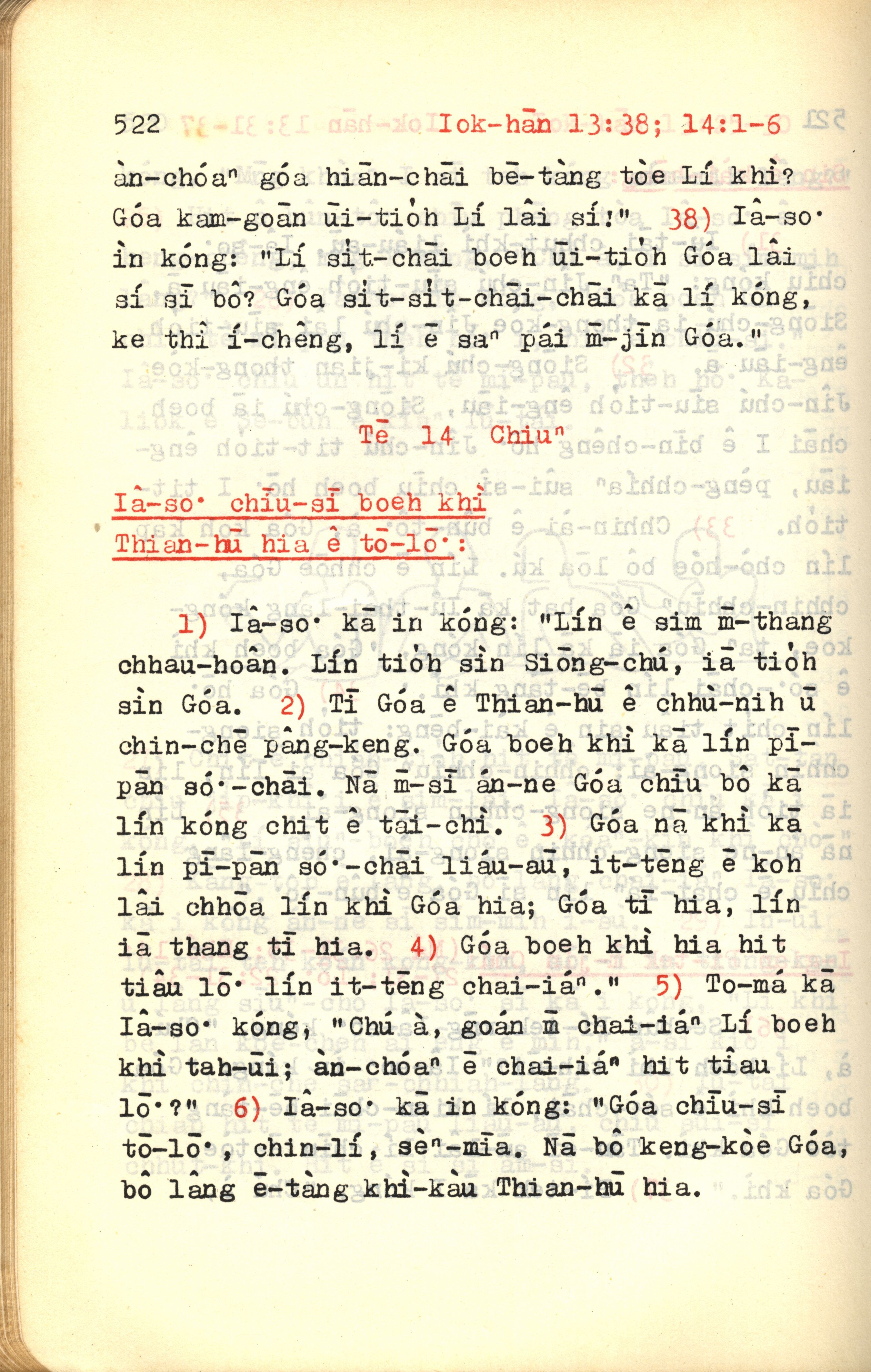 1972年新約紅皮聖經 約翰福音 13 章 38 節到 14 章 6 節