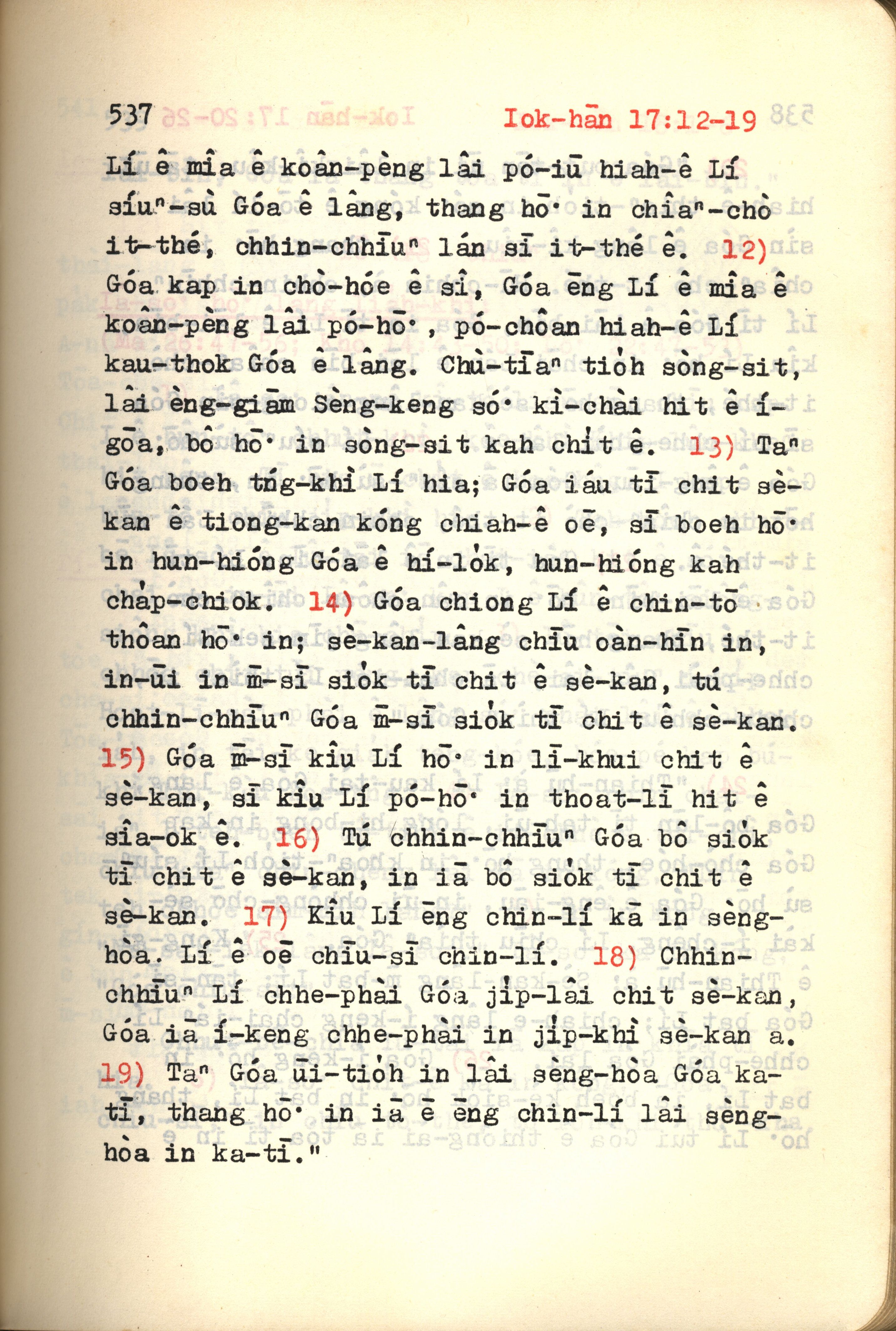 1972年新約紅皮聖經 約翰福音 17 章 12 節到 17 章 19 節