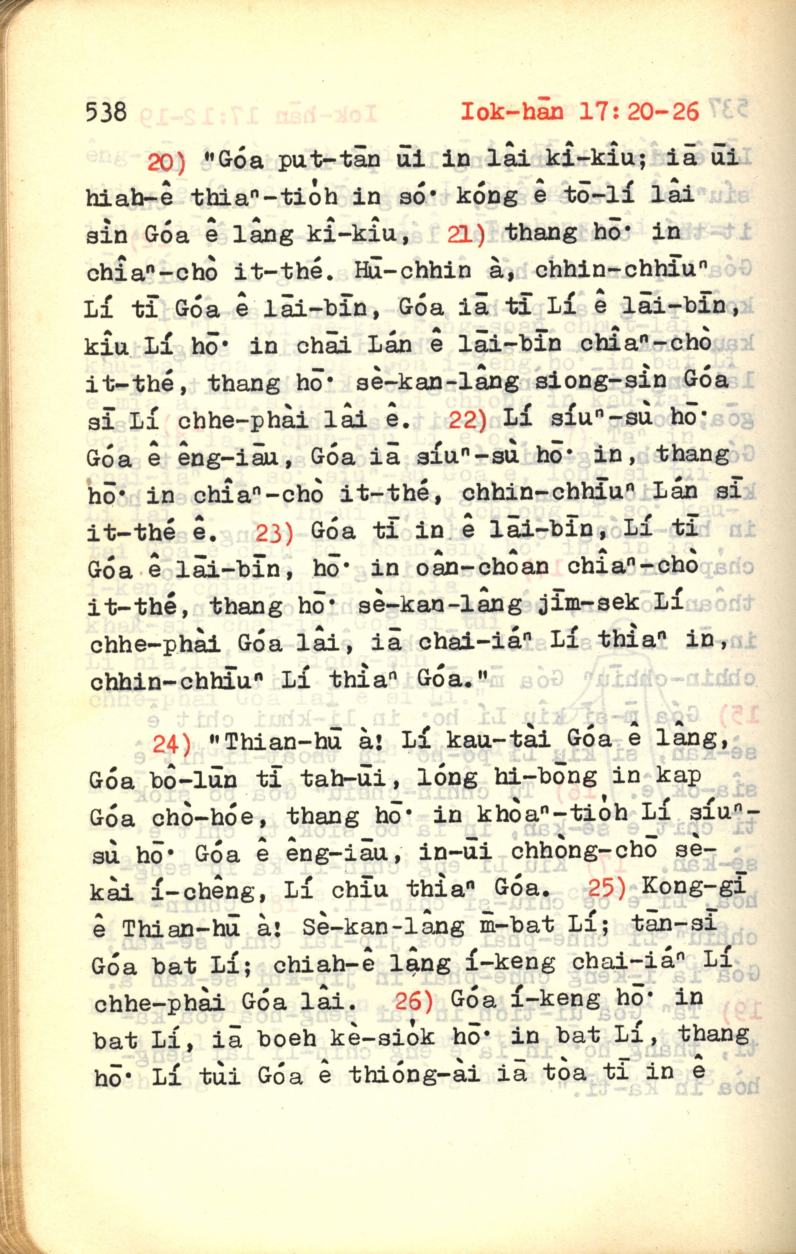 1972年新約紅皮聖經 約翰福音 17 章 20 節到 17 章 26 節