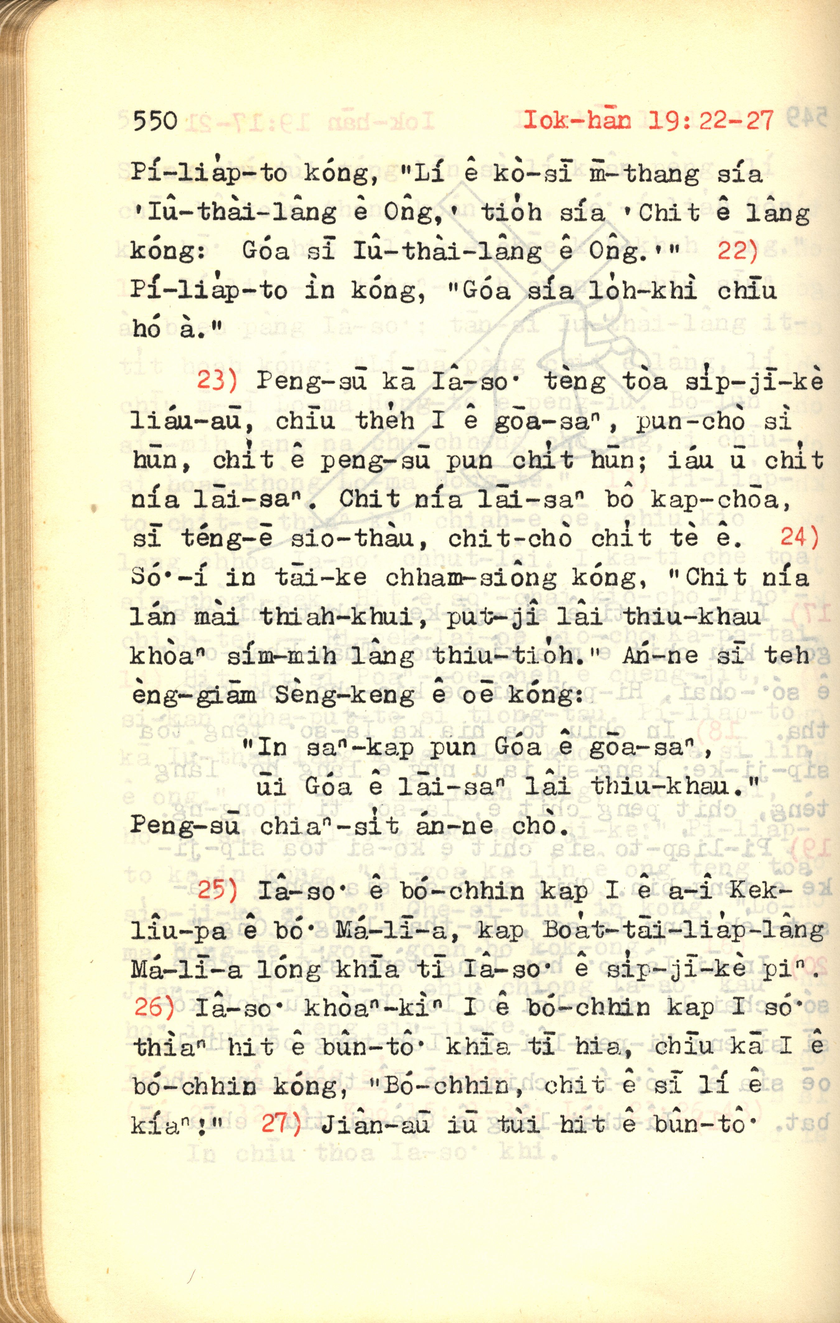 1972年新約紅皮聖經 約翰福音 19 章 22 節到 19 章 27 節