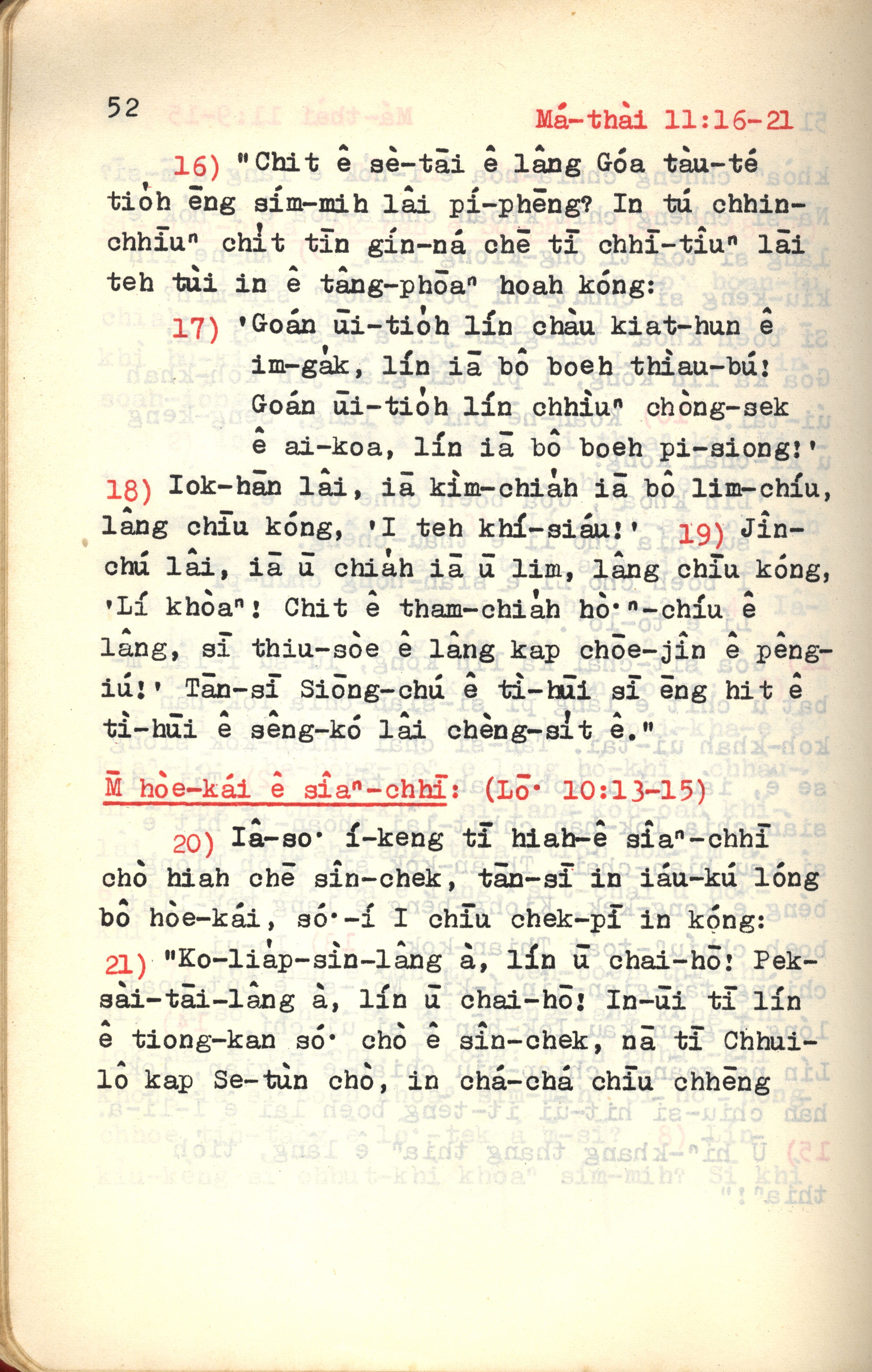1972年新約紅皮聖經 馬太福音 11 章 16 節到 11 章 21 節