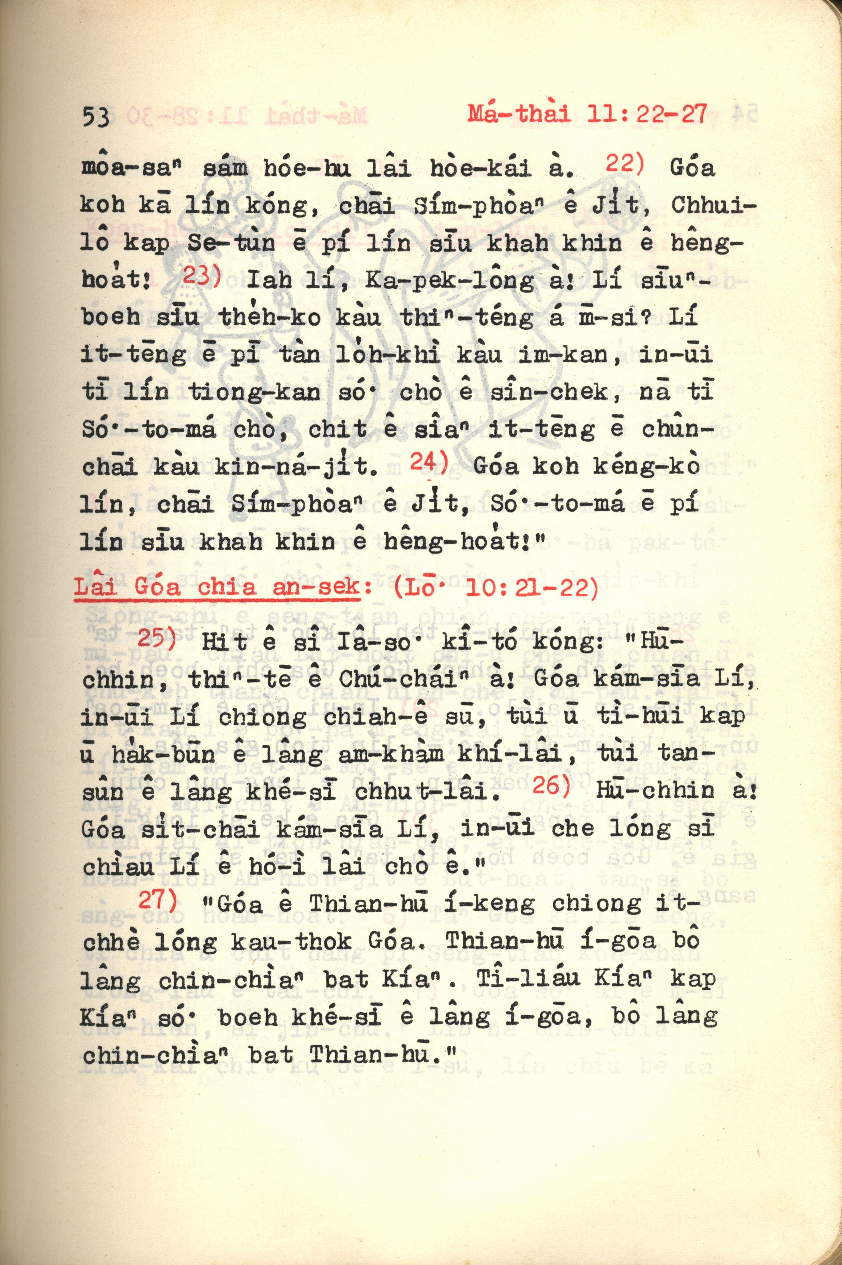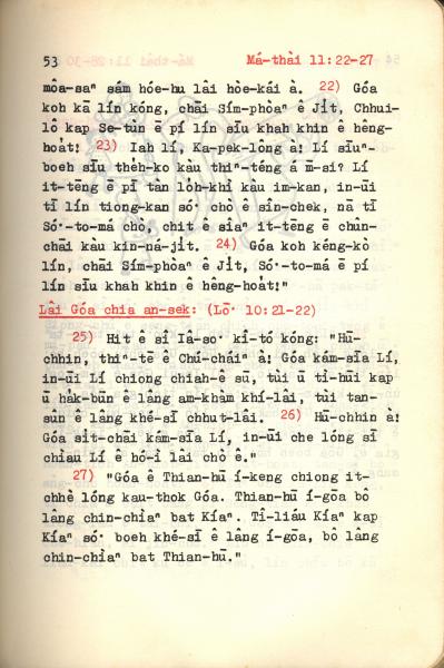 1972年新約紅皮聖經 馬太福音 11 章 22 節到 11 章 27 節