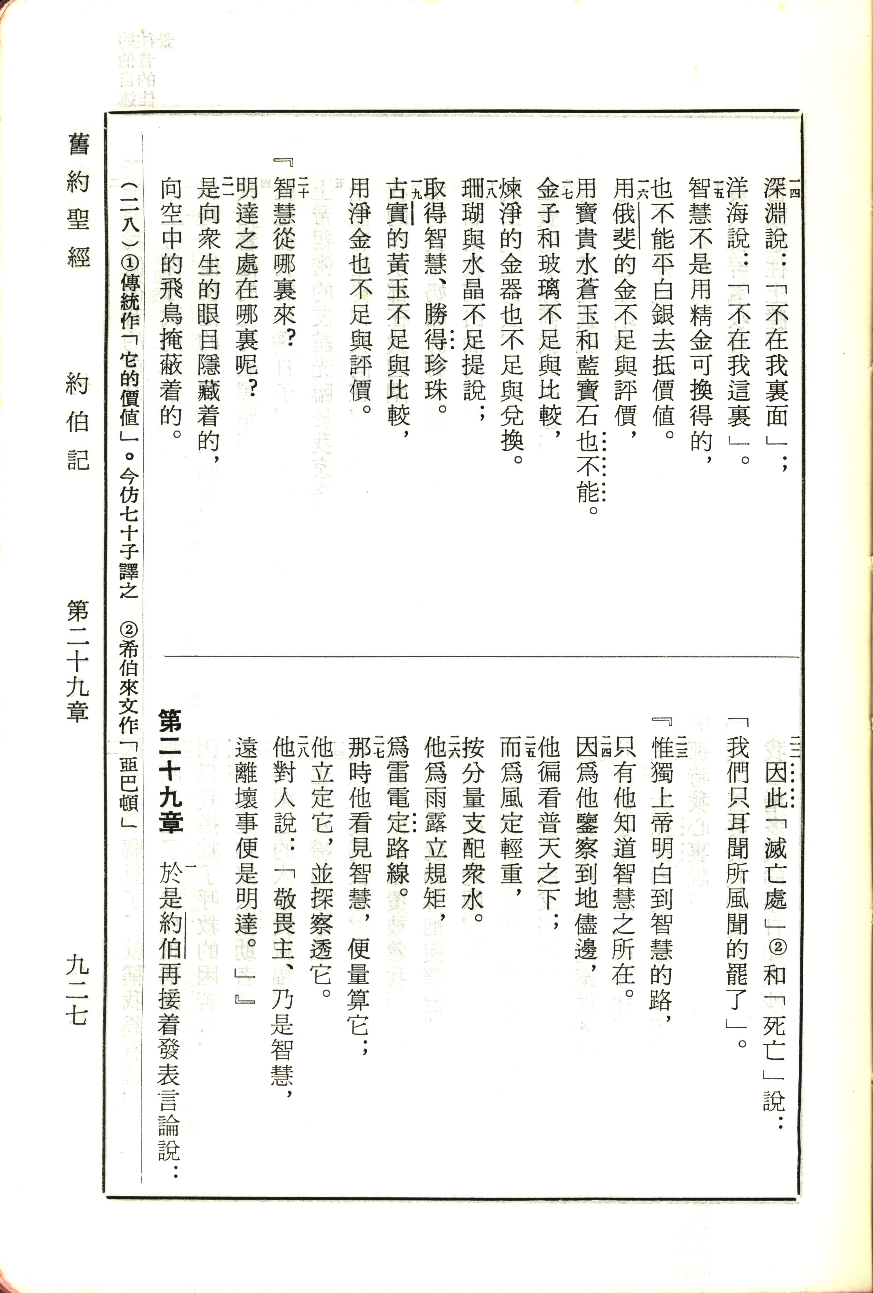 1970年新舊約全書(呂振中譯本) 約伯記 28 章 14 節到 29 章 1 節